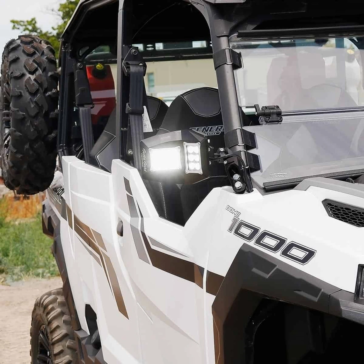 Finally, high quality UTV side-view mirrors with a large viewing window that stays vibration-free while running the trails. Easy Mounting using existing cage mount locations. The large Convex Glass Mirrors provide more than 2.5X field of view over other mirrors on the market. The two-piece adjustable Ball Tensioners allow for smooth mirror adjustments, and an ultra-secure hold at the highest speeds in the harshest bumps.