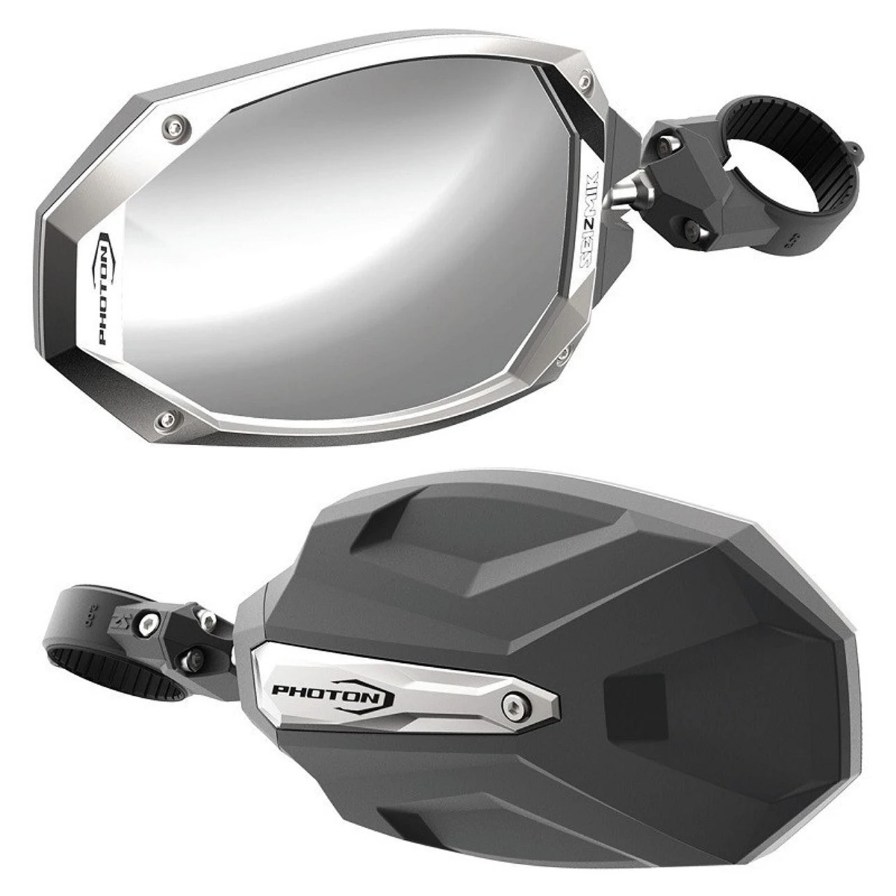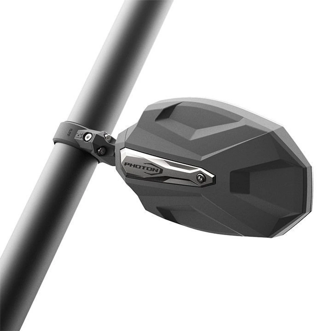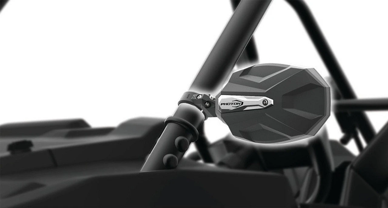 Seizmik’s Photon Side View Mirrors feature a sleek, horizontal design and new ball joint mounting system created to compliment most any UTV, but particularly the sport side-by-sides on the market today. The new ball joint and low profile clamp allow for a wide range of motion and break away feature, and accommodates the various A-pillar angles created by OEM or custom cages. Clamp sizes available will accommodate most any UTV: 1.75″ round tube ROPS; 2″ round tube with included shims for 1.875″ round tube ROPS; and Polaris Pro-Fit or Can-Am Profiled ROPS. The Photon Side View Mirrors include replaceable, convex mirror glass.