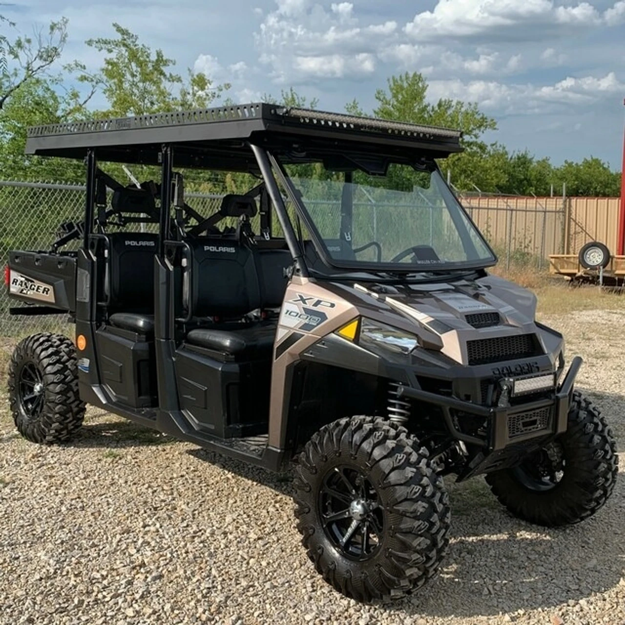 Ranch Armor brings the first one-piece UTV top that extends from the front of the UTV all the way to the rear of bed. The roof is supported by a sub-frame under the sheet metal shell in combination with the side racks. Holds plenty of weight and is very sturdy to stand on. Please note this is a built-to-order item and has many custom options available.