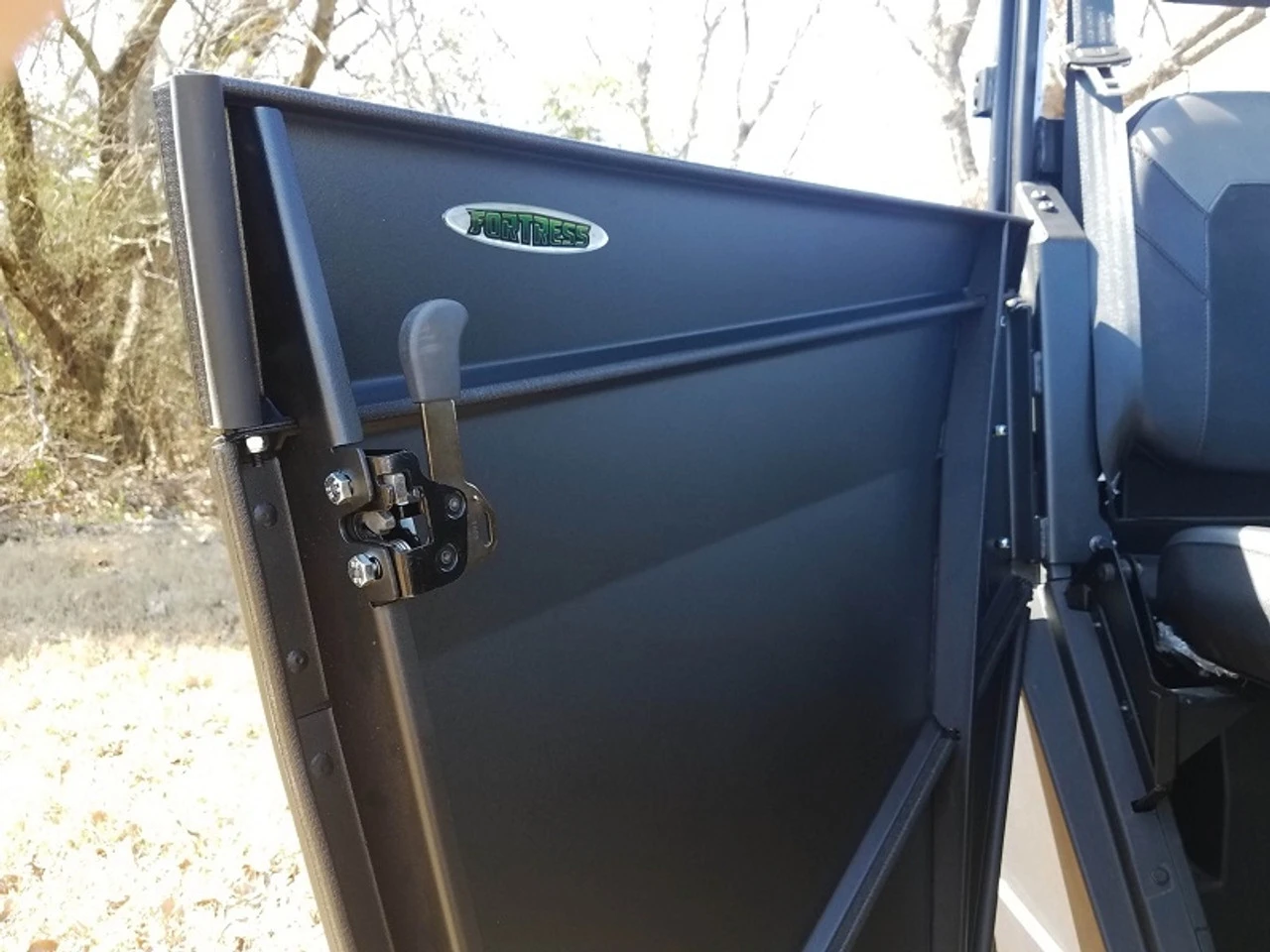Polaris Ranger Single Cab Metal Doors are here and they never looked so good. Manufactured right here in Texas! Keep debris out of the cab and add some protection as well as some sleekness to your UTV. These are a bolt-on item that require no modification with relatively easy installation. We really like how the pressed metal lines of the panels that make up the door match the body lines of the new Polaris Ranger 1000. They will ONLY work with a 2018+ (New Body Style) Polaris Ranger Single Cab. The doors are constructed of sheet metal/steel and arrive in one-piece. The only installation required is hinges to vehicle and doors. Install takes about 1 hour per door. The Ranger metal doors come with a durable powder coat finish.