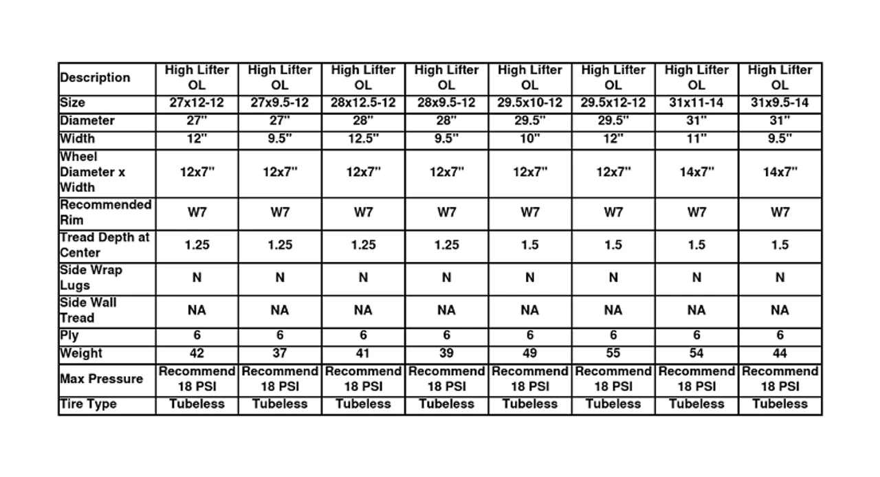 The tread bar design features a rounded tip, paddle-like, cupped lug and is a full 1-1/2″ deep for improved traction. The cupped lugs help propel the UTV forward as opposed to cutting through the mud and digging a hole like some sharp tread tip competitor tires do. The “Outlaw” design also puts more rubber on the ground for longer tire life, and resistance to tread tears and tip wear. The design includes a large and unrestricted space between the lugs for superior self-cleaning capabilities.