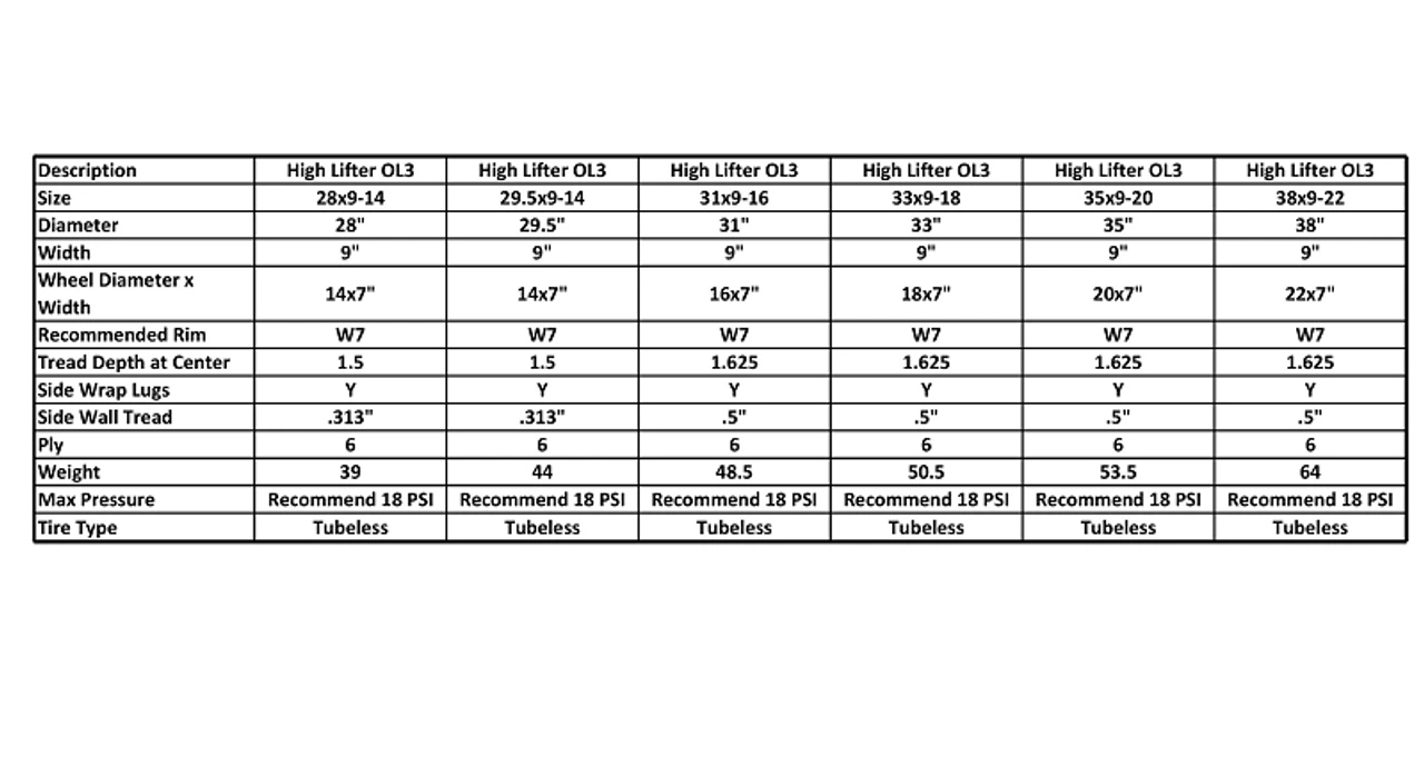 High Lifter’s newest breed of mud tire, the Outlaw 3, is designed to get through the toughest mud holes imaginable. Our unrivaled design offers extreme grip and self-cleaning treads. It’s deep lugs give excellent traction! The flat profile and lighter weight offer a smooth ride. The Outlaw 3 can run larger wheels and has High Lifter’s well known Outlaw look plus durability.
