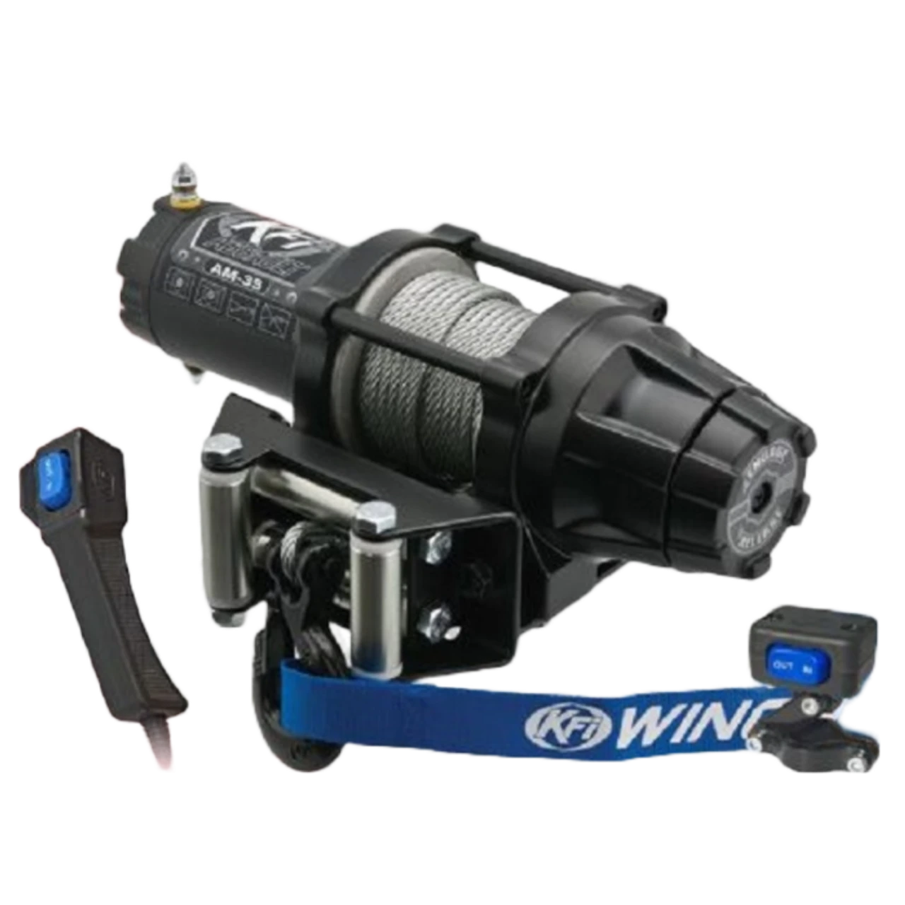 Whether its on a winding trail, plowing snow or deep in the mud, a reliable winch is the most important accessory a rider can have. Equip your UTV with a KFI WINCH and feel confident you can pull yourself out of any situation. The KFI AM-35 Assault Winch comes with everything you need other than an UTV model specific winch mount. Everything shown is included along with detailed installation instructions and hardware to mount your winch to a model specific UTV winch mount.