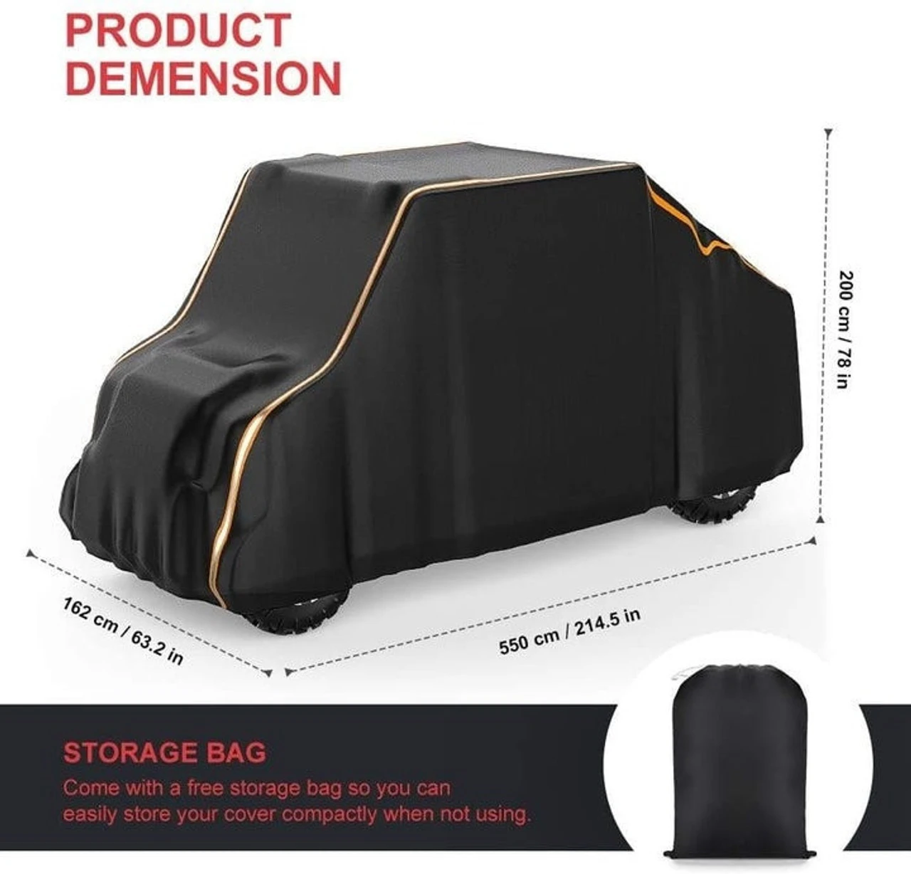 - Polyester cloth and PU coating which can last much. This Kemimoto 4 seater cover provides excellent protection against snow, rain, dirt, dust, and sun UV rays.