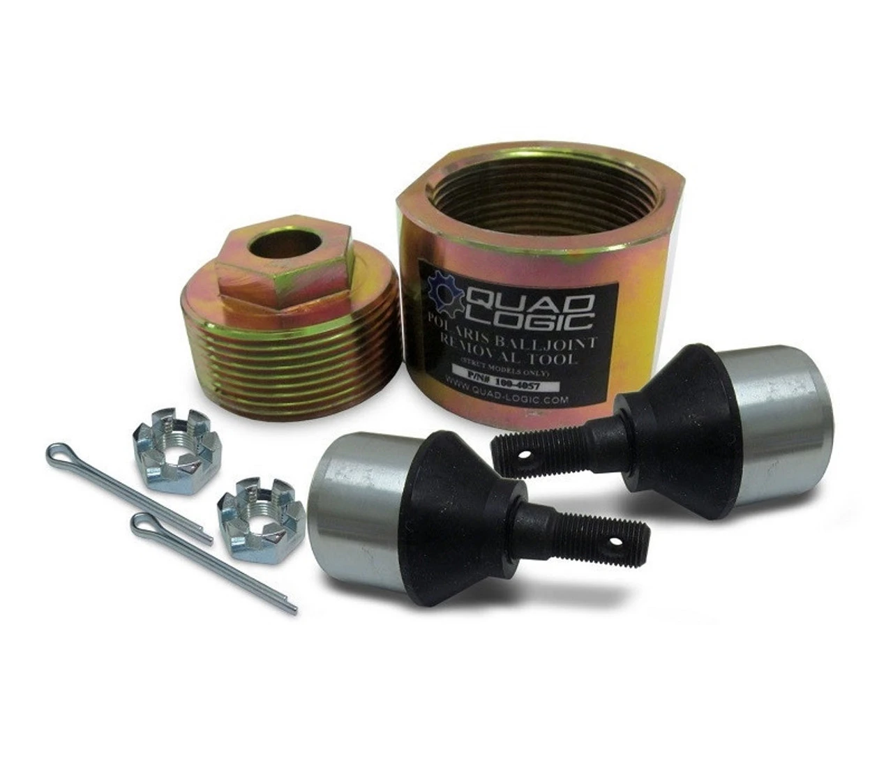 This is the ultimate ball joint kit for your front strut model Polaris UTV! Pulling the ball joints from the aluminum strut housing on most Polaris UTV’s can be a real challenge. We developed this unique tool to make the job much easier. This two piece steel puller simply goes over the balljoint, install the nut, and turn out the inner puller to remove the ball joint. A 6 point 1″socket is required. Zinc plated for corrosion resistance.