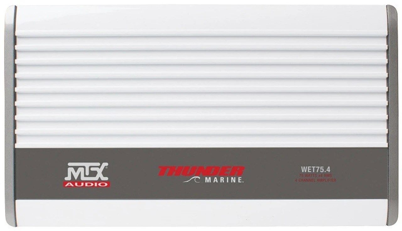 The WET75.4 is a 4-channel full range amplifier. The WET75.4 is capable of producing up to 400W total RMS power, 100 watts per channel. The unit features a a class A/B circuit design that delivers exceptional sound quality and small chassis with an extruded heat sink that effectively dissipates heat ensuring long play times.