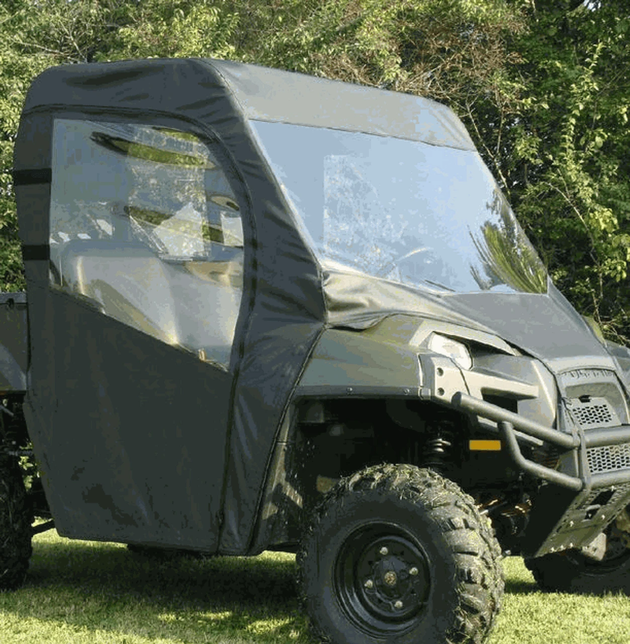 I would guess that with one of these full cab enclosures you could dream up all kinds of reasons to use your Polaris Ranger when the weather gets cold. Just imagine how awesome it would be to have a full cab enclosure on your Ranger while plowing the drive, going for a cruise or checking the cattle when the weather is nasty? This enclosure is American made and is built to last. On those nicer days, just roll the doors back for an open cab. This full cab enclosure will add versatility, usability and comfort to your Polaris Ranger XP 800.