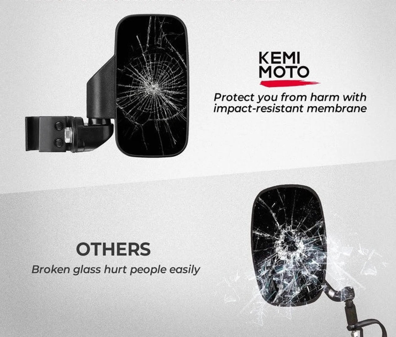 The side mirrors use upgraded shatter-proof lens, and you won’t have to worry about glass shards hurting you or others if you break one of these mirrors.