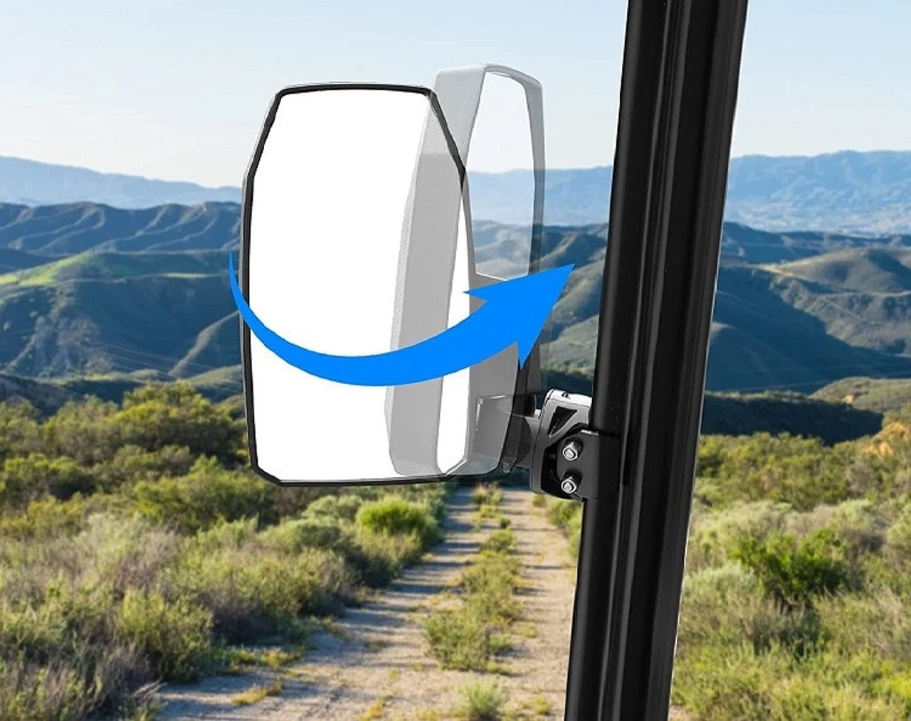 The UTV side mirrors are 8.3 inches tall and 4.7 inches wide, giving you a large field of vision. In addition, the convex mirror shape expands your field of vision in comparison to a flat mirror.