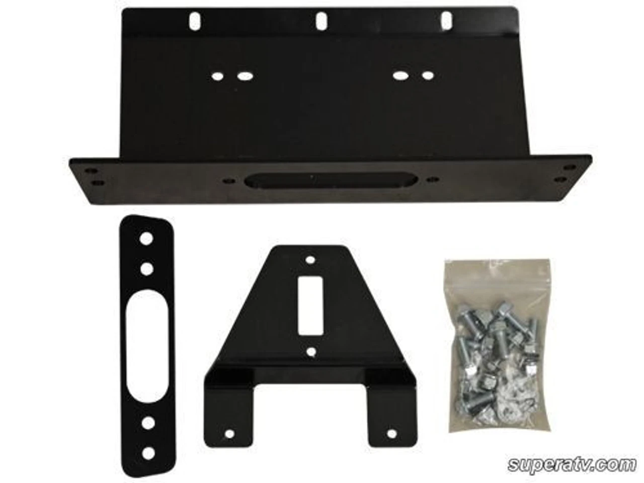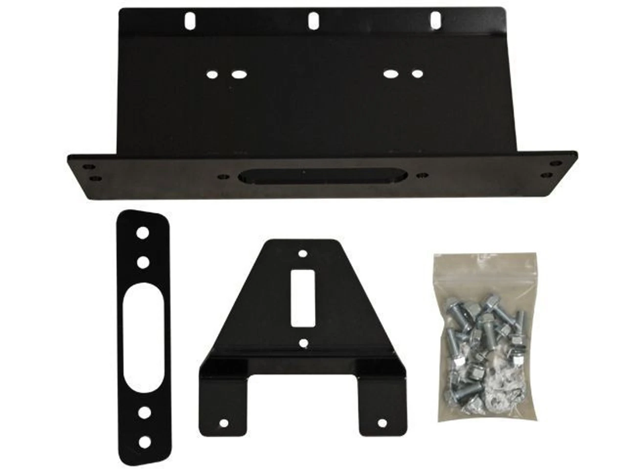 This Polaris Ranger XP 500 800 Full-size & 800 Crew heavy-duty winch mount plate is manufactured of heavy gauge steel and powder-coated black for a long-lasting finish! The Polaris Ranger Winch Mount Plate is designed to withstand the strain of pulling your Ranger out of the most extreme circumstances. All hardware and mounting instructions are included.