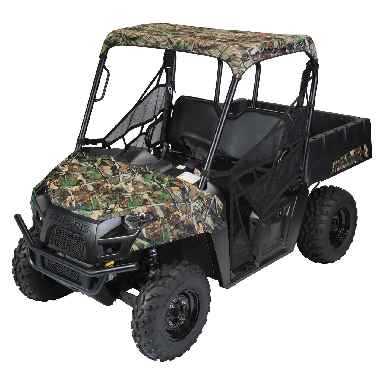 Add superior function and style to your Polaris Ranger with the Full-Sized Camo Roll Cage Roof Top by Quad Gear. Featuring a heavy-duty ProtekX6 fabric, water-resistant backing, and exterior coating, this roll cage roof top helps protect you from the harsh elements of life in the backwoods. Quad Gear accessories are built to help you tackle the trails with high performance and style. Decked out in camo, this aftermarket roof top fits perfect with the rest of your gear.