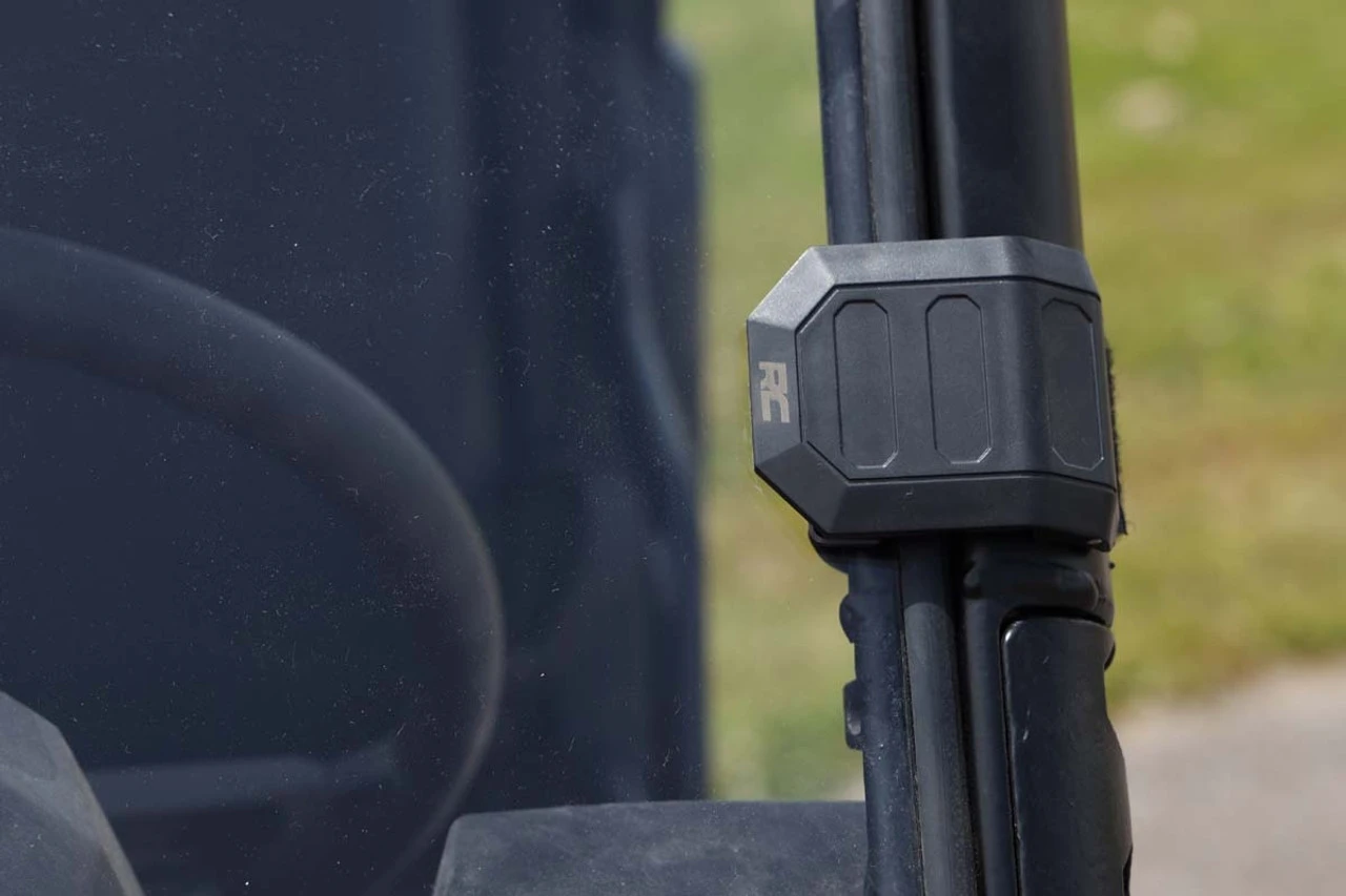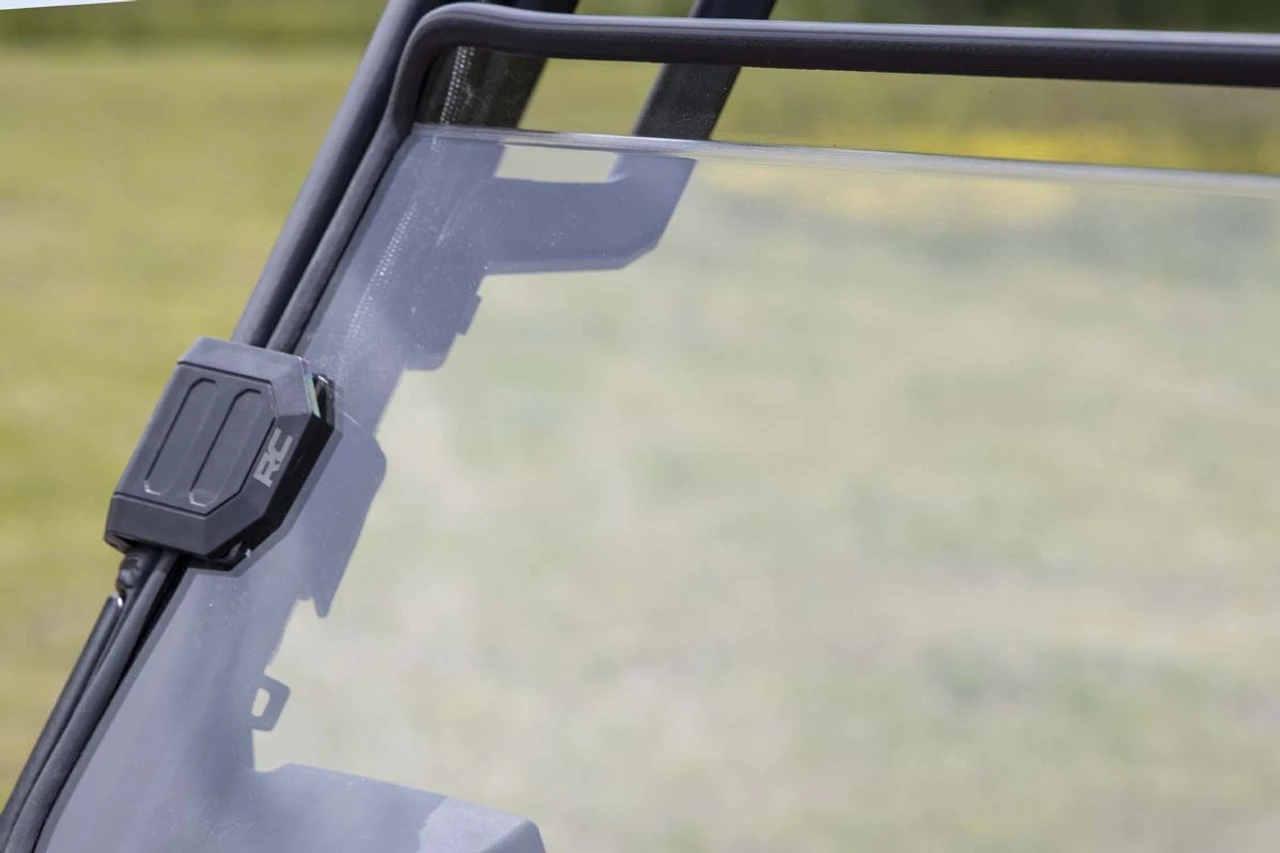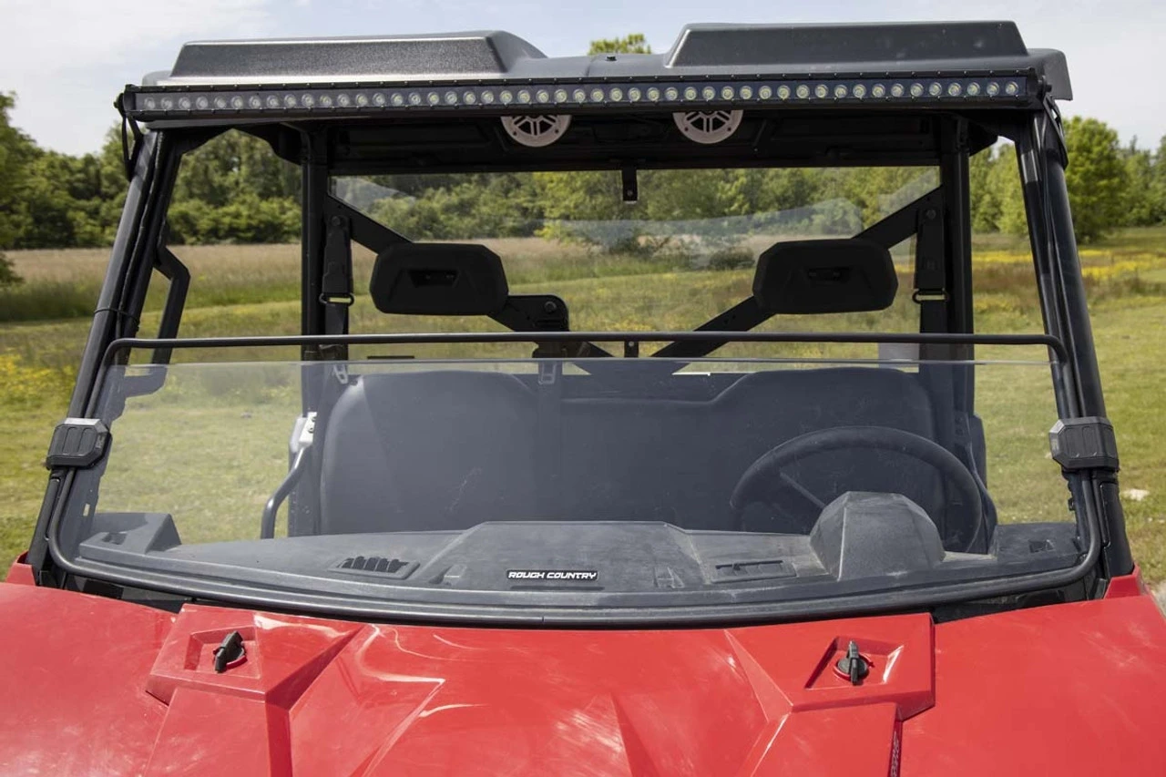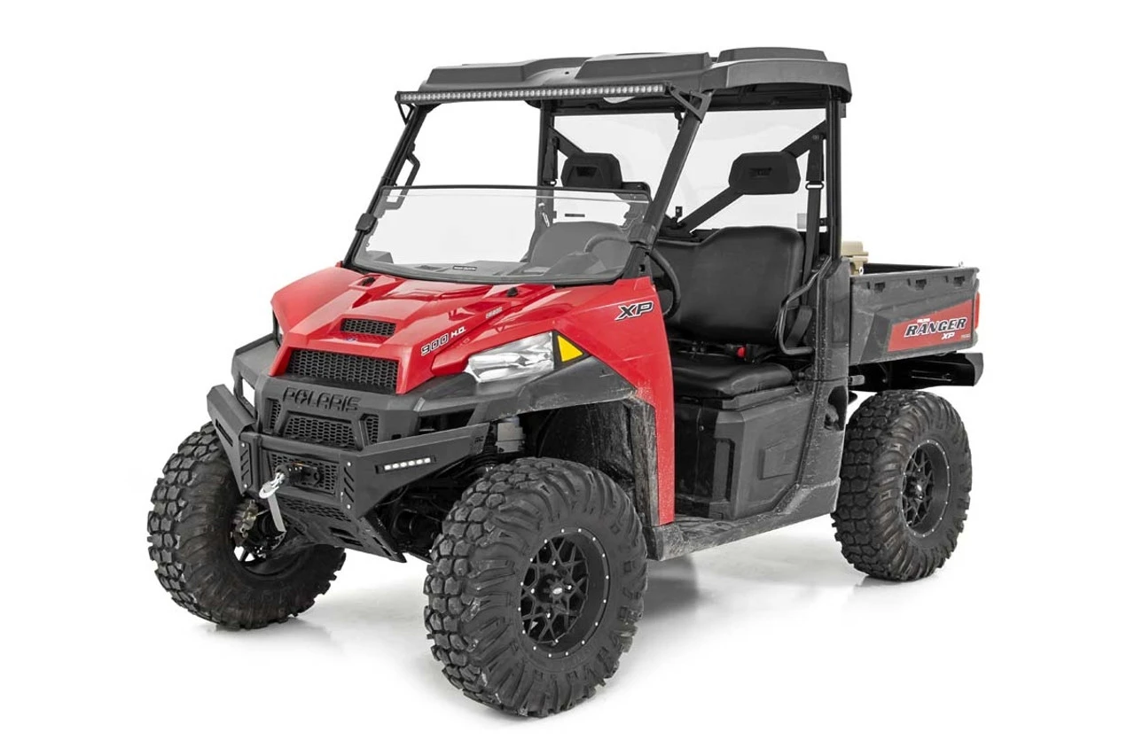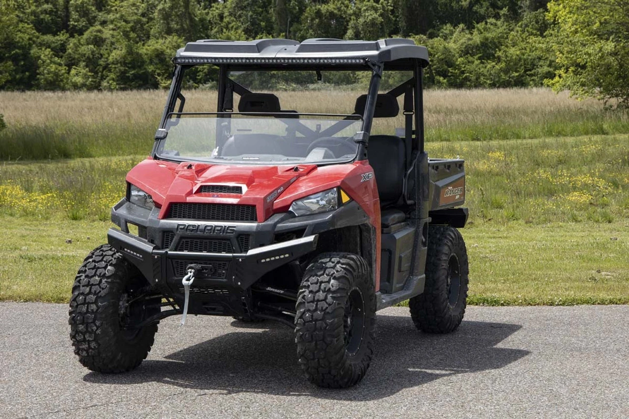 You don’t have to expose yourself, your passengers, or your in-cab accessories to the elements when riding, nor must you suffer from unbearable heat and stale in-cab air. Get the best of both worlds with the Polaris Ranger half windshield by Rough Country! Unlike other products out there, this half Polaris Ranger windshield is scratch resistant so that your visibility is never obscured. It won’t get caked with mud and block your view like a full windshield, yet it provides much more protection than no windshield at all. Because of its lightweight construction, the extra mass Rough Country’s half windshield adds to your UTV is negligible. And because it can be put on or taken off in a matter of minutes, you can run it in the summertime when heat and humidity are at their highest, then throw on your full cab enclosure when things cool down during winter. Don’t make unnecessary sacrifices and upgrade your bike with a half Polaris Ranger windshield by Rough Country!