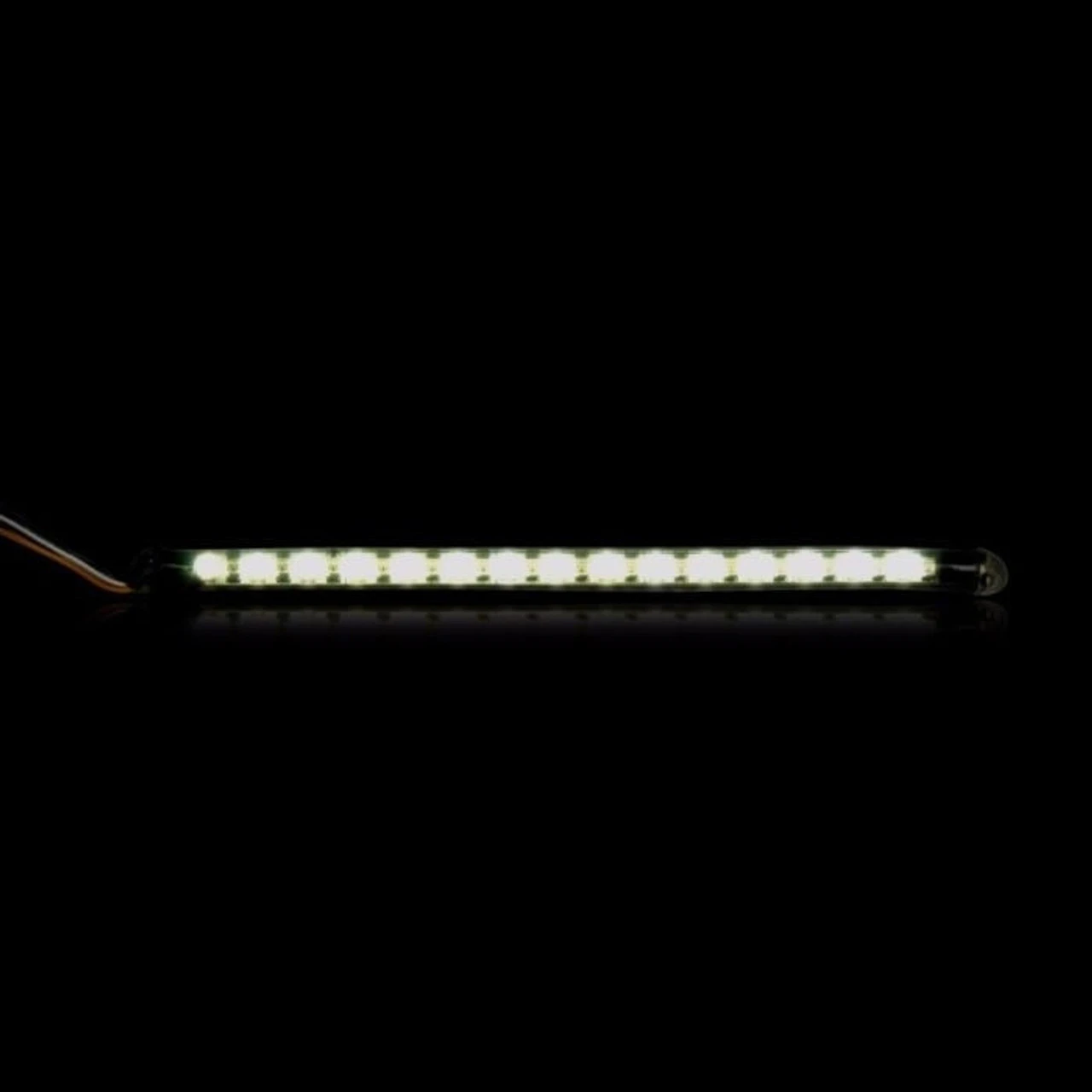 Amber/White TruFLEX® is a compact flexible LED lighting strip with surface mount Amber and White LEDs encased in a flexible, UV resistant Smoked tubing. White LEDs stay on as DRL; when Amber is activated, the White LEDs will turn off giving greater visibility to the amber turn signal. Each strip is 100% sealed with UV stable military grade RTV. Comes pre-taped with 3M™ automotive grade tape for mounting on back surface. Lifetime warranty against LED failure, water damage, UV damage, and wire breakage. Sold Each.