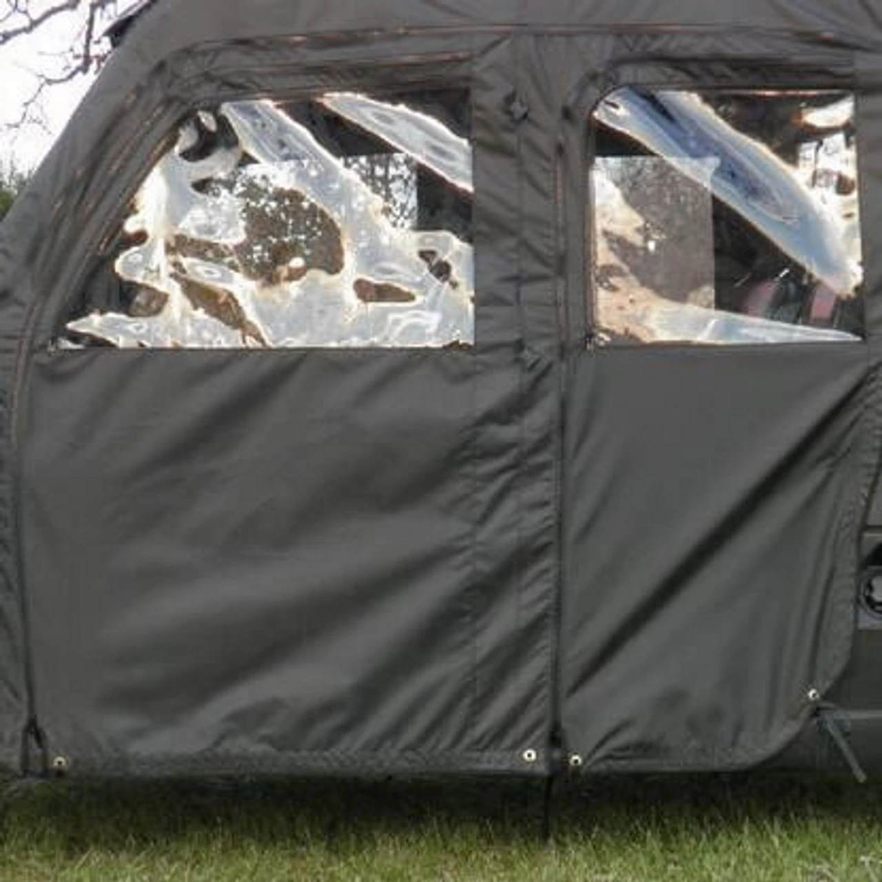 - Zippered Side Windows – Door windows zips on 2 sides – the front and top