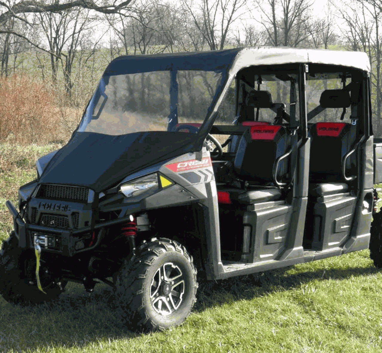 The Mid Size Polaris Ranger 570 Crew or Ranger Crew 570-4 is a machine that is good at moving people places they never thought a vehicle could go. Its impressive Pro-Star power plant, it’s on demand 4-wheel drive and the ability to safely haul 4 people are reasons why the Ranger is great SXS. But there are some drawbacks when it comes to the Ranger, one such issue is rider protection from the elements. That’s why we carry this GCL Soft Windshield, Top and Rear Window for your SXS.