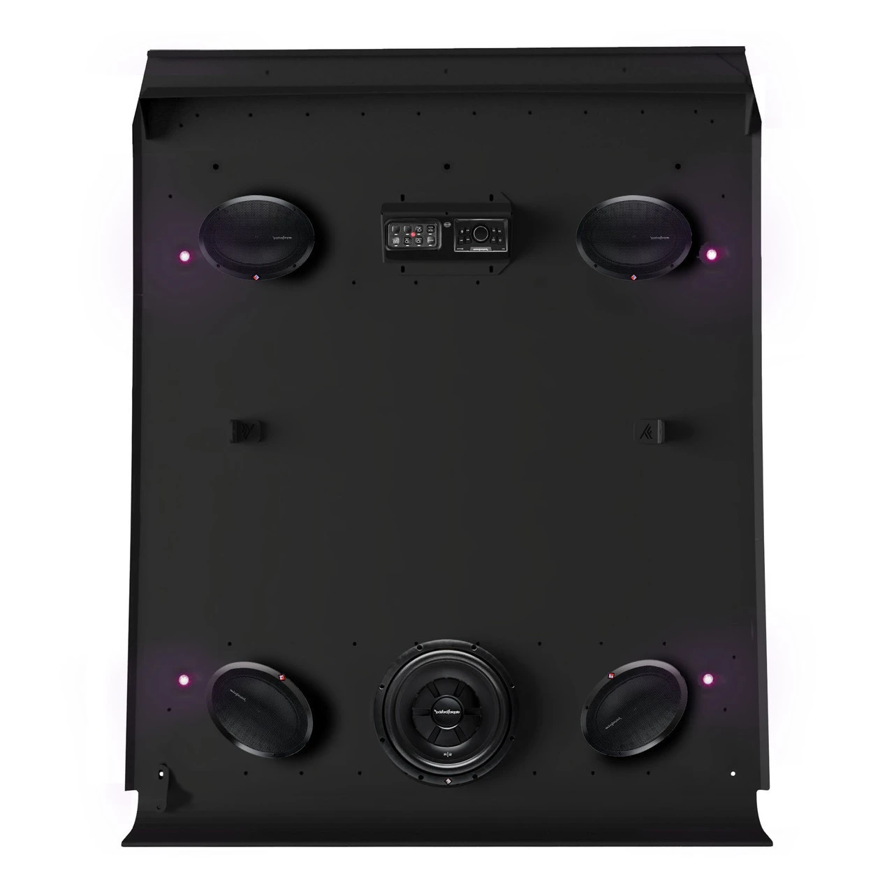 We set out to design an the strongest, lightest, and loudest audio roof packed with features for your Polaris Ranger Crew. We use only the best and the industry leader in UTV Audio Rockford Fosgate! Rockford Fosgate has been known to bring the bass and the best in audio quality and #SOUND!