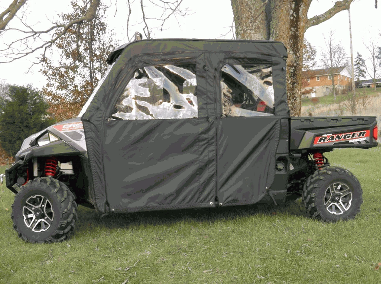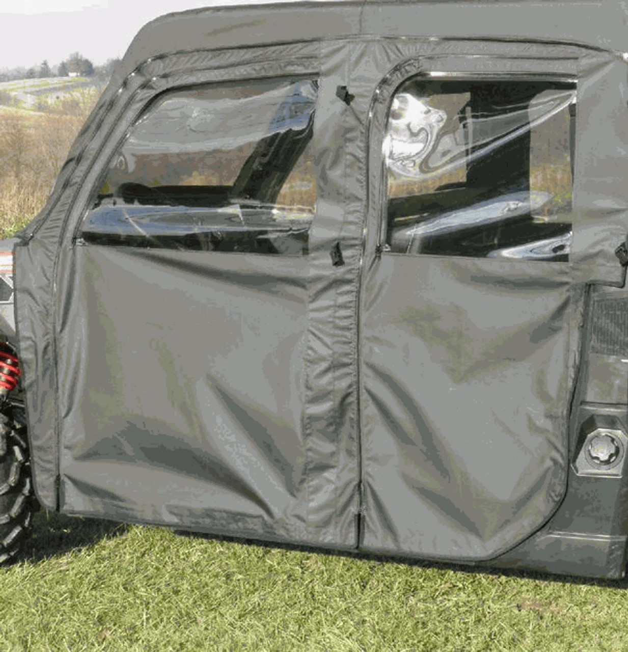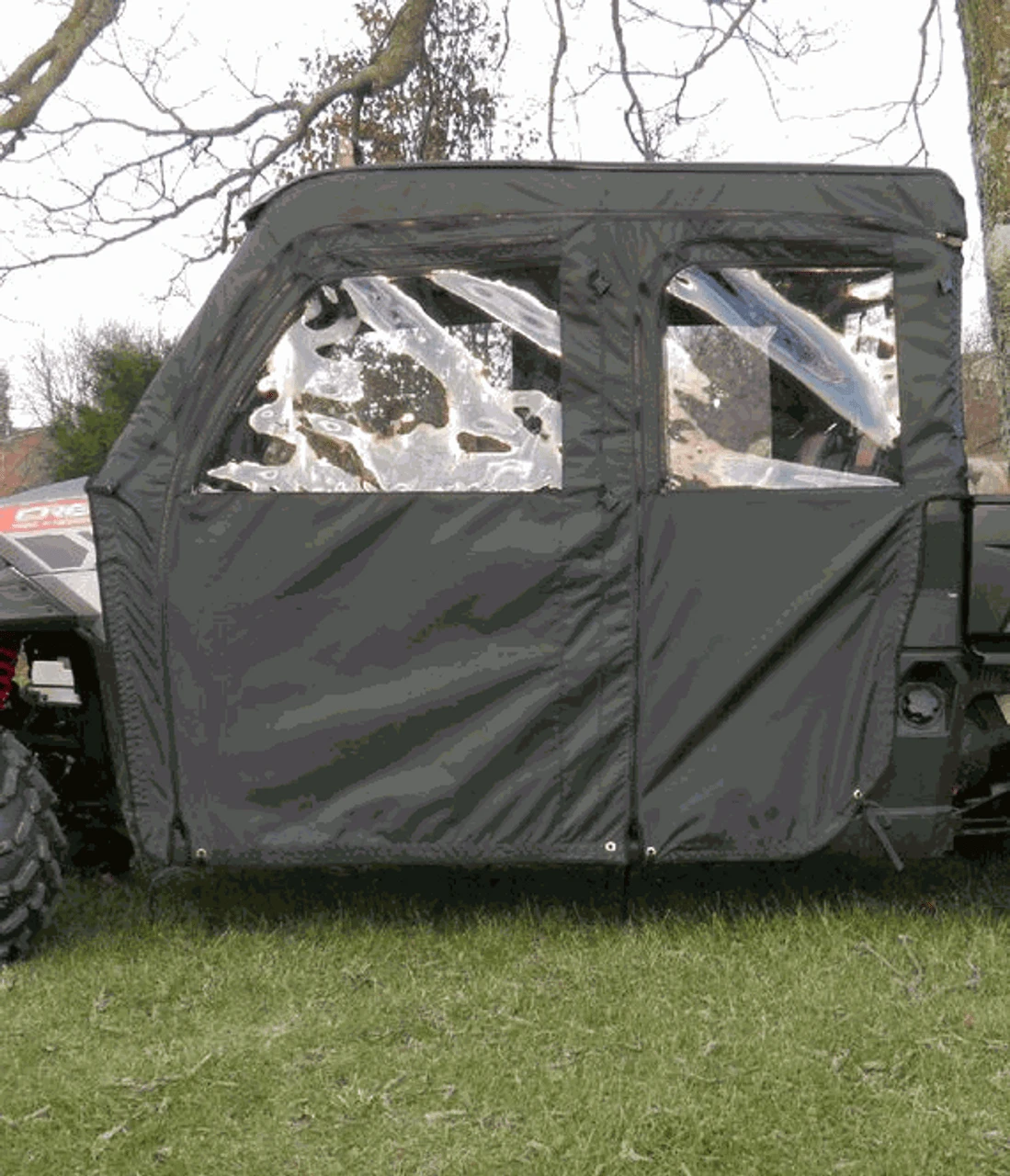 You may have already added a windshield, top and cab back to your Polaris Ranger Crew, but are finding you need more protection from the elements. Everything Polaris Ranger offers the Soft Full Doors by GCL made specifically for your Full Size Ranger Crew, just for this purpose. Designed to work with your existing hard accessories, you will get complete enclosure with the addition of the soft doors. No need to worry about visibility or accessibility, the doors have large clear Aqua-View smoked vinyl windows to keep an eye on your surroundings, and you can add zippers to the windows so they can be easily opened for airflow.