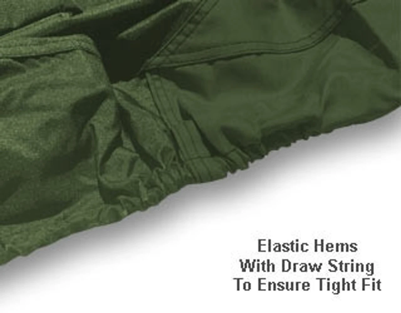 There are double stitched seams and the hem is elasticized in the front and rear of the cover to ensure an extra snug fit. This cover comes with a FREE storage bag