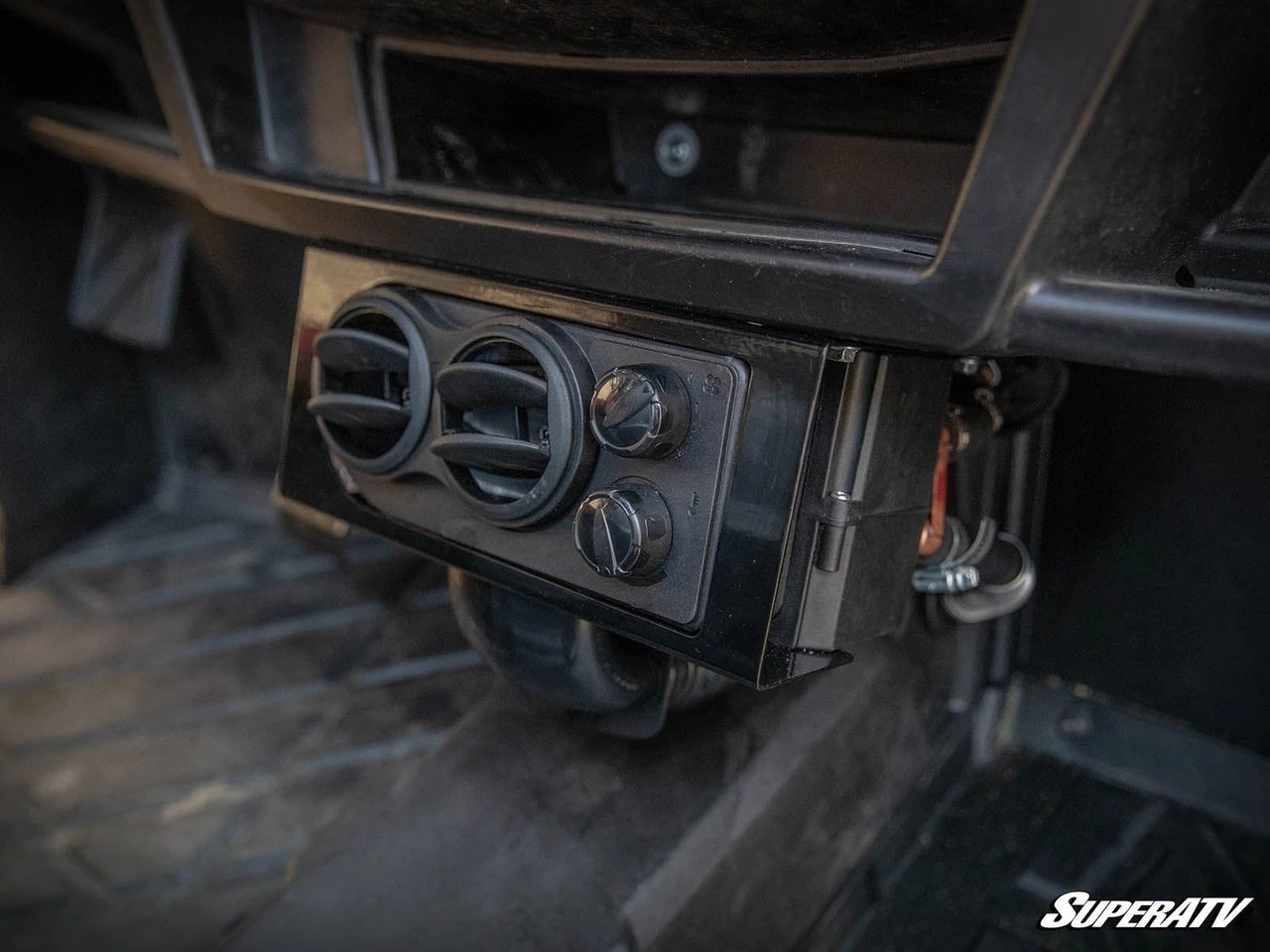 Now you can use your Ranger 1000 Diesel year-round with SuperATV’s Cab Heater keeping you warm. It mounts under the dash between the seats where it’s out of the way for both the passenger and the driver. It draws engine heat directly from the coolant lines to heat your cab just like a traditional car heater. Install is easy—our kit uses the Ranger’s own key on and power terminals to make wiring a cinch. We include hoses, drill-bits, and Ranger-specific mounting plates to make it as easy as possible to get your heater up and running. With adjustable temperature fan speeds you’ll be riding in luxury all winter long.