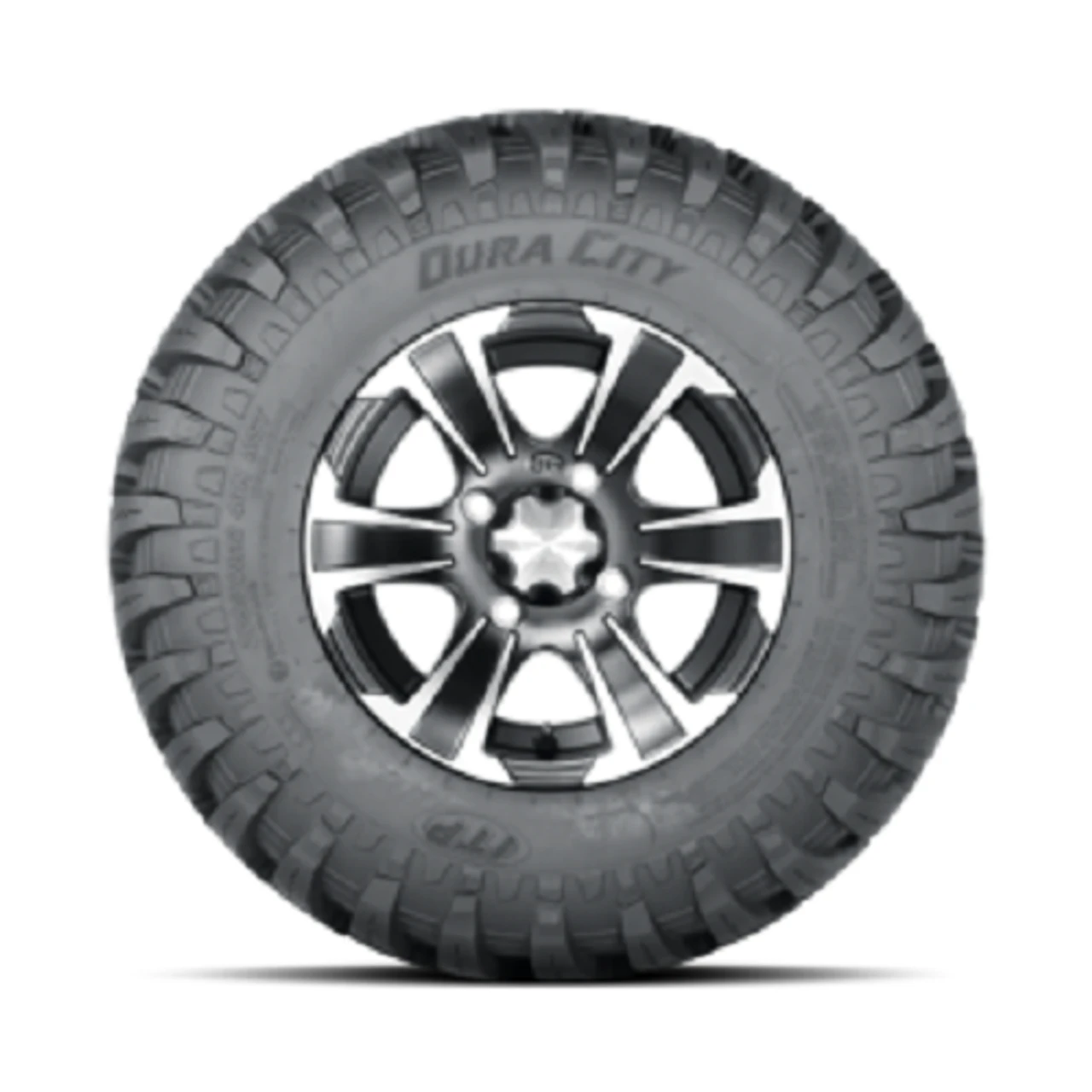 The ITP DuraCity features a multiple pitch design with siping to promote a quiet ride. Its continuous center contact patch and directional tread pattern make this tire ideal for off-roading in various conditions. Shoulder steps allow for better self-cleaning and improved handling and stability.