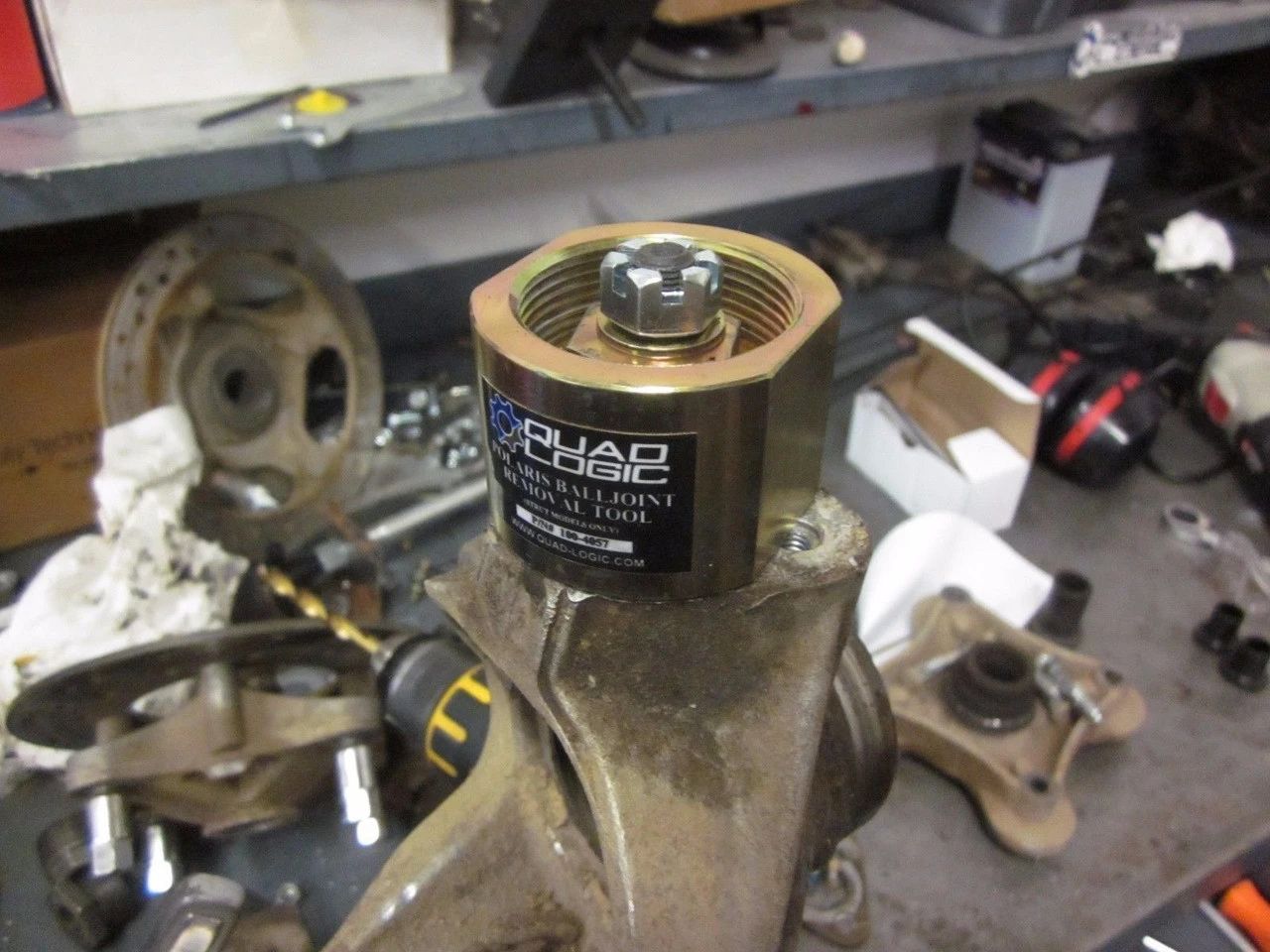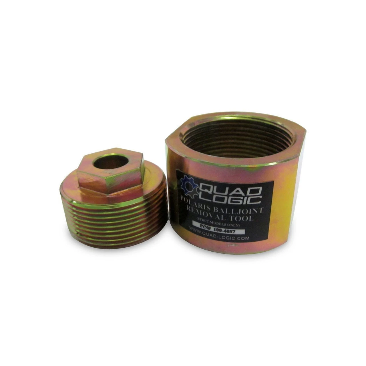 Pulling the ball joints from the aluminum strut housing on most Polaris ATV’s can be a real challenge. We developed this unique tool to make the job much easier. This two piece steel puller simply goes over the balljoint, install the nut, and turn out the inner puller to remove the ball joint. A 6 point 1″ socket is required. Zinc plated for corrosion resistance. The heavy duty design is suited for either home or professional shop use.
