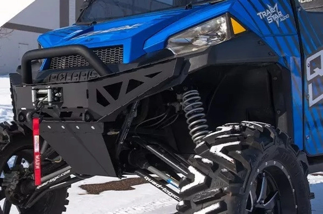 Toughen up your Ranger with style. This is the meanest bumper on the market. Not only does it look tough, it is tough. Thick gauge steel and boxed construction makes this the ideal front bumper/brush guard for off road use. We have taken on rocks, went toe-to-toe with stumps and trees and this bumper wasn’t phased. Strong 4 point mounting and the aggressive design matches the lines of the front end that protects the plastic, headlights, and radiator. The front Baja bar adds a nice touch without being too large.