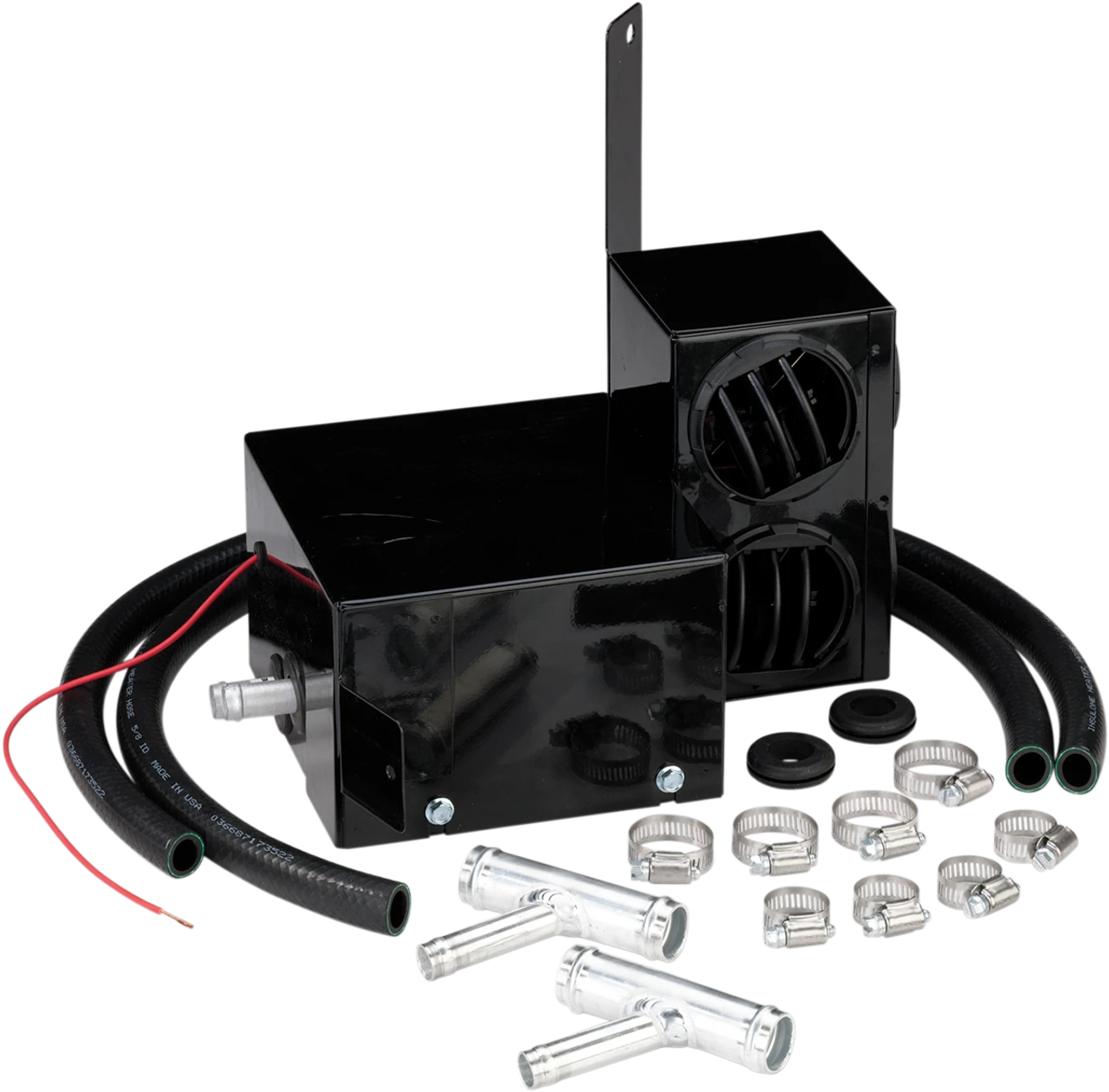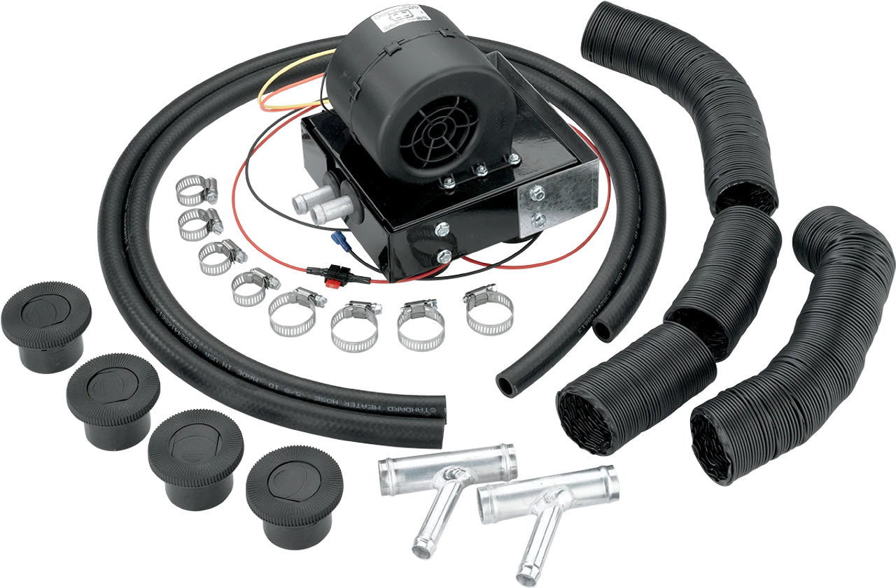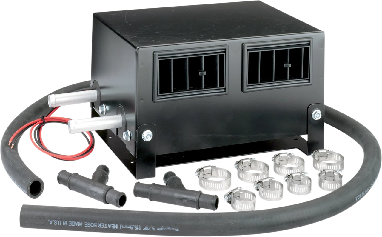 - 12-volt universal cab heater kit for UTVs with 1″ and 3/4″ radiator hoses