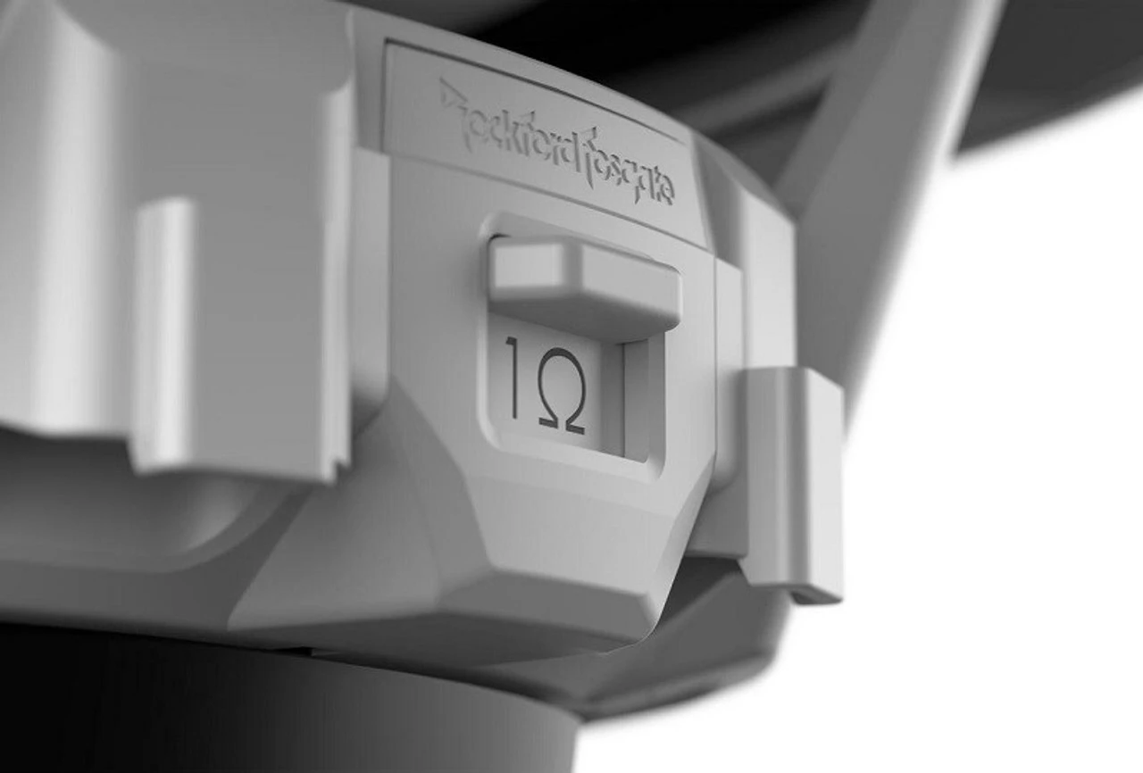 The M1 series of Element Ready™ subwoofers are designed to pair with the Rockford Fosgate Color Optix™ Controller and RF Connect App through its Deutsch™ and Amphenol™ connectors integrated into the basket. This combined with their IP67 certification make these speakers Element Ready™ and truly purpose built for marine applications. To compliment the plug and play connectivity and streamline installation, M1 subwoofers are equipped with a VersaSwitch™ to make changing impedance between 1 and 4 ohms as easy as flipping a switch.