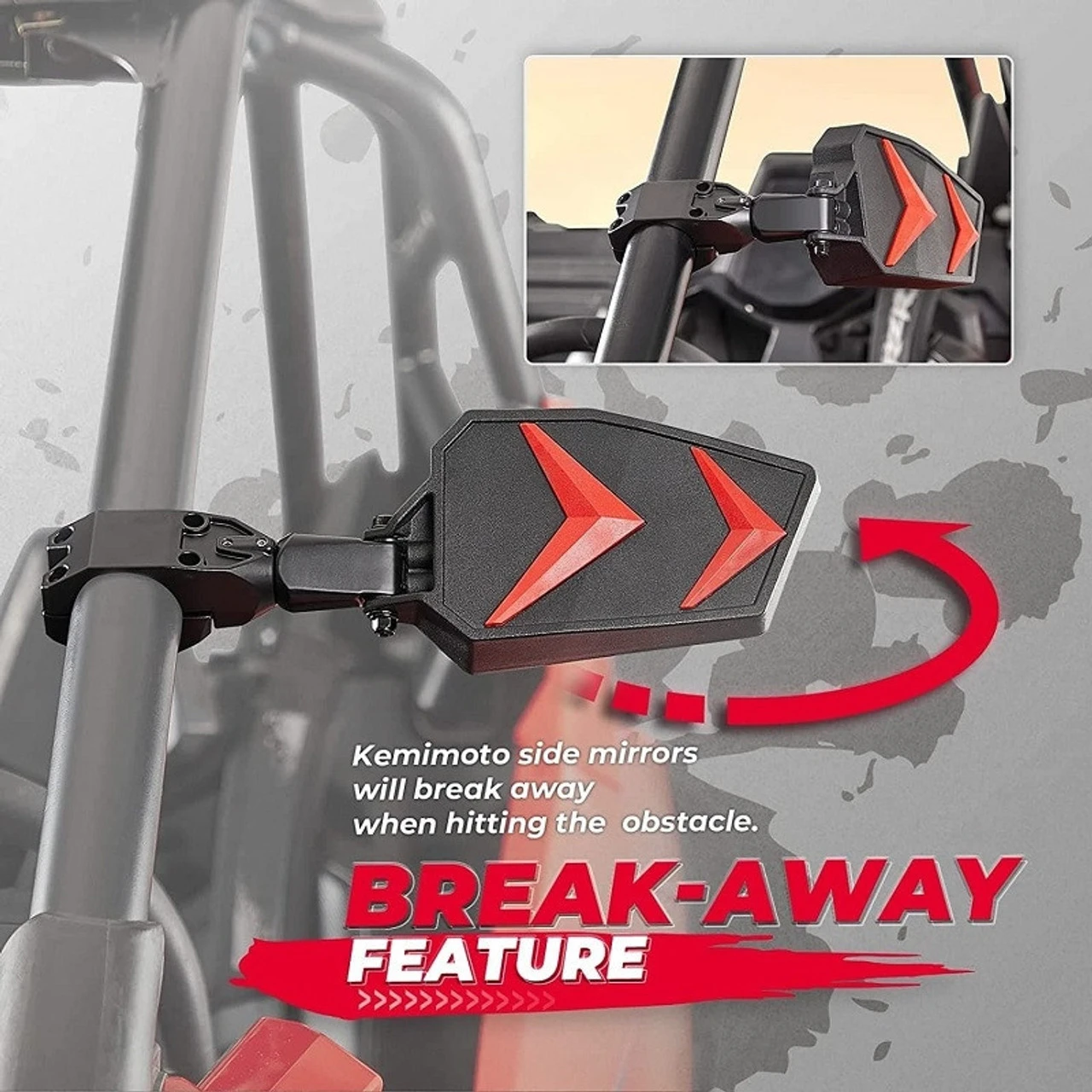 Side Mirrors for UTV have a break-away feature with 180 Degree adjustable angle, you need to check it or tighten the screws after installation, and you can press the glass to adjust the mirror angle, too.