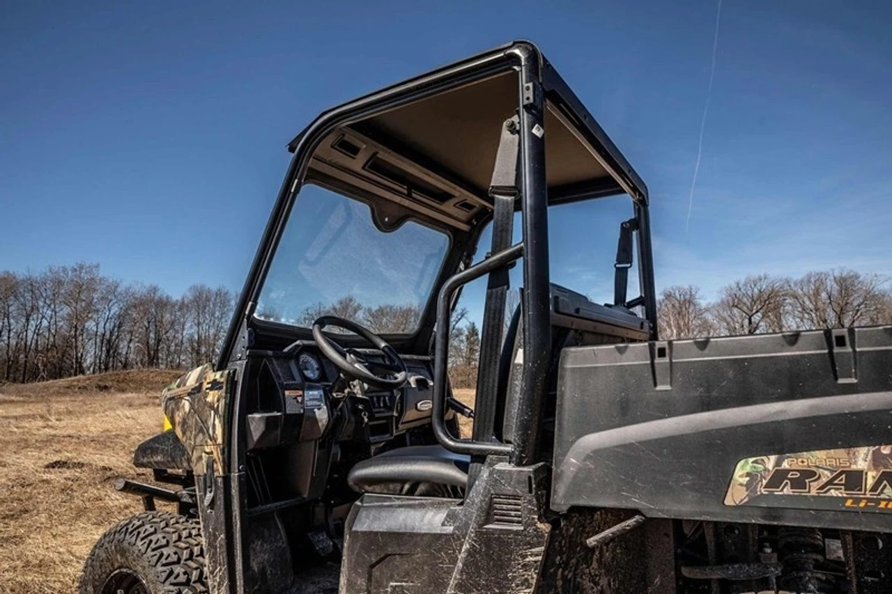 Heavy-duty 14-gauge thick steel roof for Polaris Ranger 500, 570, ETX, EV and EV/ION UTVs. Quick and easy installation and compatible with Kolpin Glass Windshields and select back panels.