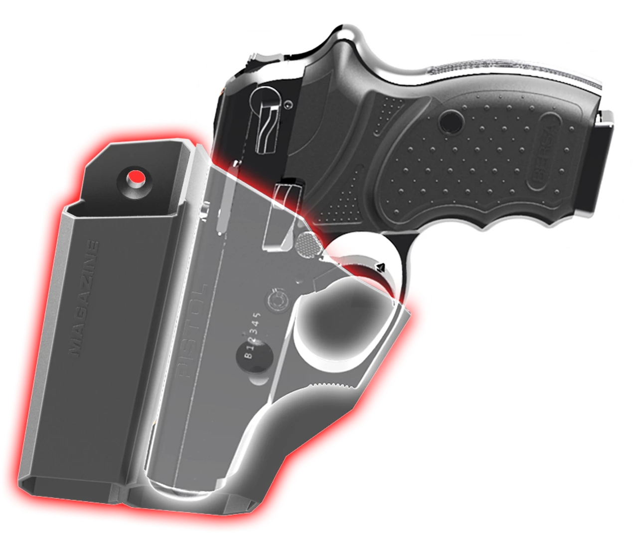 - MAGAZINE HOLDER —Extra magazines can be stored separately in divided slot. Magazine and gun do not contact each other preventing scratches.