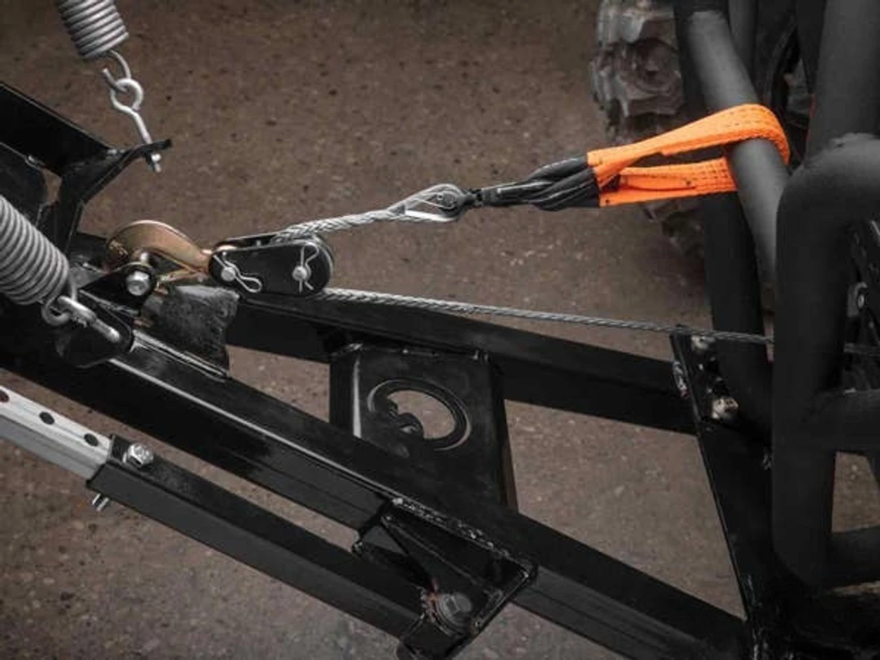 You get a strap and a pulley with a hook, and that’s all you need. Hook your pulley to your plow, run the winch rope through it, then hook your winch hook to your bumper with the included strap. It takes just minutes to reduce the wear on your winch.