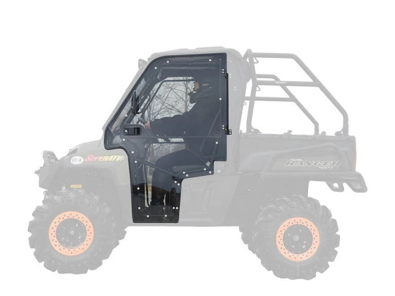 SuperATV Full Cab Enclosure Doors will make working and playing on your Polaris Ranger XP 800 more comfortable and fun. These high-strength, abrasion-resistant polycarbonate doors protect against all the elements. The lockable latches mean you can keep your valuables safe if you have a windshield and a roof installed. We use a UV-resistant powder coating on a steel frame to keep the doors durable and rigid. They keep everything out without ruining your view. They even come with side view mirrors!