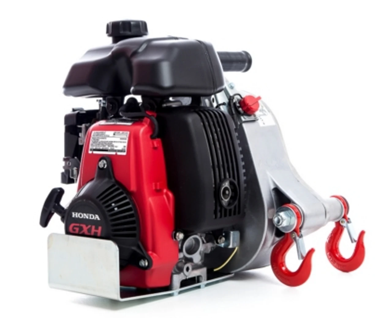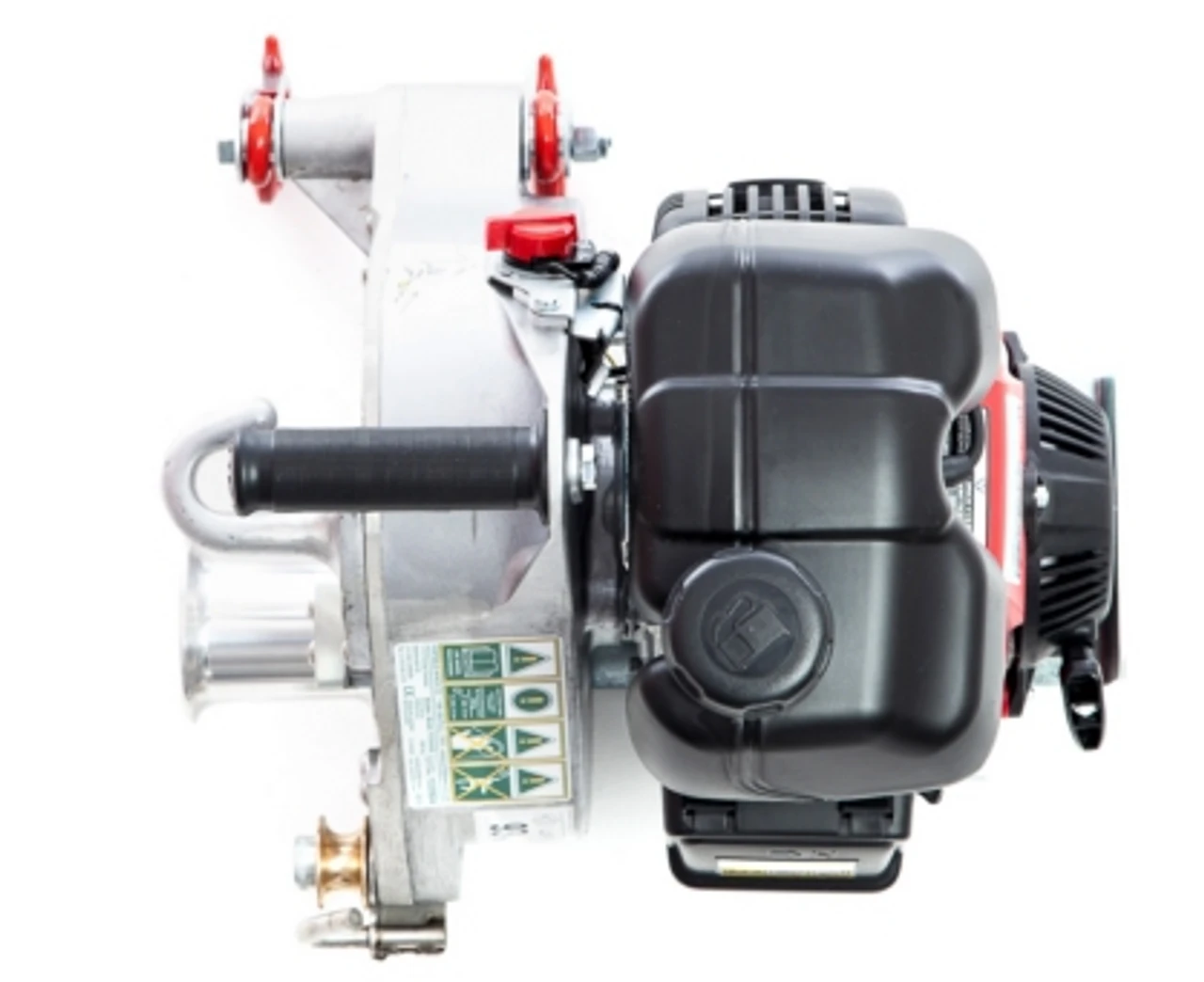 This winch is lightweight, portable, gas (petrol) powered, and has a 1000 kg (2200 lbs) pulling capacity. If you ever need to bring down hung-up trees, pull out-of-reach logs, get a vehicle un-stuck, or haul a moose out of the bush or water, the 078037 is for you. Weighting only 16 kg (35 lbs), this Portable Winch is easily carried and can be anchored to anything using the 2 m (6′) long sling provided or the different anchoring accessories.