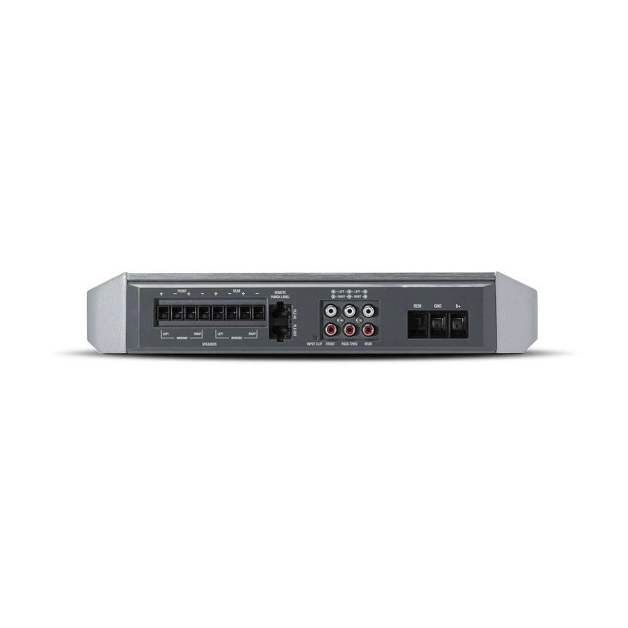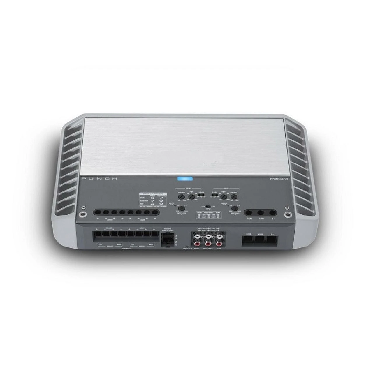 The Punch PM600X4 multi-channel amplifier is versatile to power any audio system configuration. In addition to 4-channel stereo mode, you can bridge both channels to create a high power 2-channel amp, or run stereo speakers on the front with subwoofers on the rear in 3-channel mode. The variable HP/LP crossover and built-in Punch EQ allows for precise tuning of Bass frequencies and the Pass-Thru RCA jacks provide flexibility as your system grows and keeping Y-adapters to a minimum.