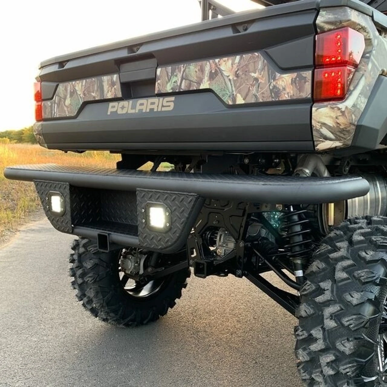 Ranch Armor has brought you a rear replacement bumper for the Polaris Ranger (2018+) that makes your unit stronger, as well as looks great. Ranch Armor sets itself apart from the competition with our new bumper line for the Rangers. Our bumper mounts easily and securely to factory frame holes on bed chassis. Main construction is the 2″ bent pipe combined with laser-cut and pressed tread plate.