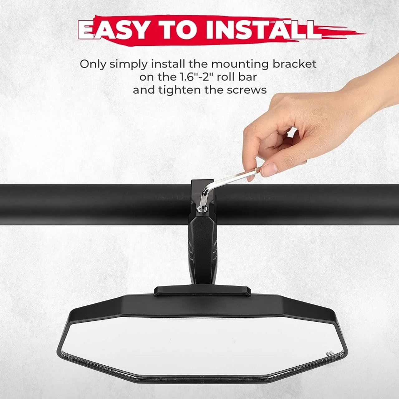 Utv Center Rearview Mirror With 360 Degrees Adjustable Ball Pivot, Makes It Easier To Adjust The Angle Of Rear View Mirror For You Need. Kemimoto Utv Mirrors With Non-Slip Tape Can Hold The Mirror More Stable, Ensures The Utv Mirror Always Keep Stable To The Roll Bar Cage In Off-Road Adventures.