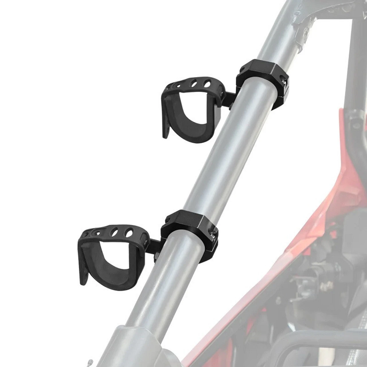 Made of solid steel for long-term durability. Steel gun holders are more sturdy and durable than plastic gun holders, even in cold weather. A UTV rack for weed eaters, augers, shovels, and whips.