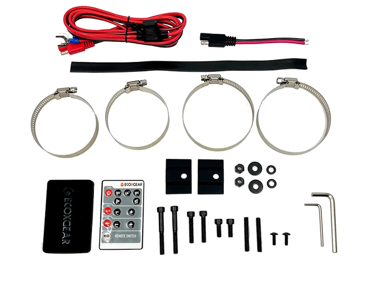 - Waterproof 12V auxiliary power out connection cables to link other 12-volt accessories