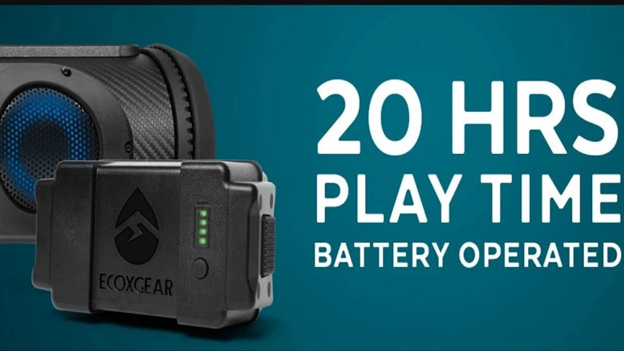 The SoundExtreme SEB26 by ECOXGEAR is a 25.5-inch long rechargeable, waterproof, dustproof, amplified Bluetooth speaker with a removable rechargeable battery pack.