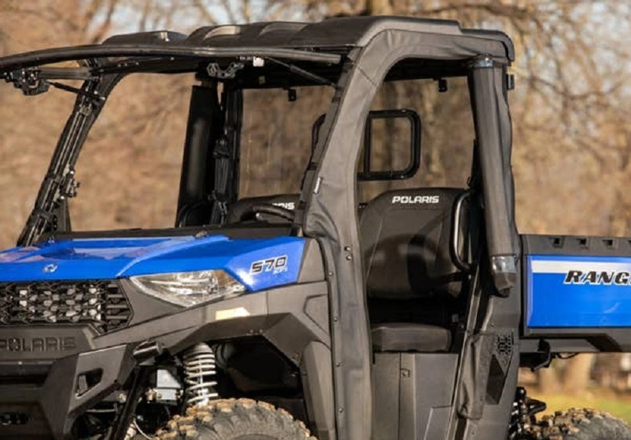 Your work has to get done, rain or shine. That doesn’t mean that you have to just suffer through when the rain starts to pour. Instead of getting soaked, get SuperATV’s Polaris Ranger SP 570 Primal Soft Cab Enclosure Doors. They’re made with Pel-Tek technology for water resistance and strength. They’re easy to zip on and off when you’re ready to enjoy the sunshine too.