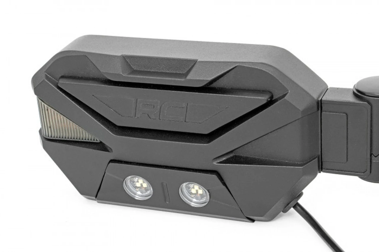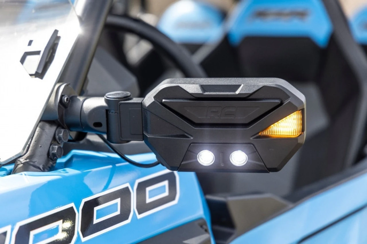Enhanced Visibility: Equip your UTV with Rough Country’s Universal Side Mirrors with LED and amber blinkers. This kit is an easy addition to your UTV’s existing blinker kit to provide impressive off-road illumination.