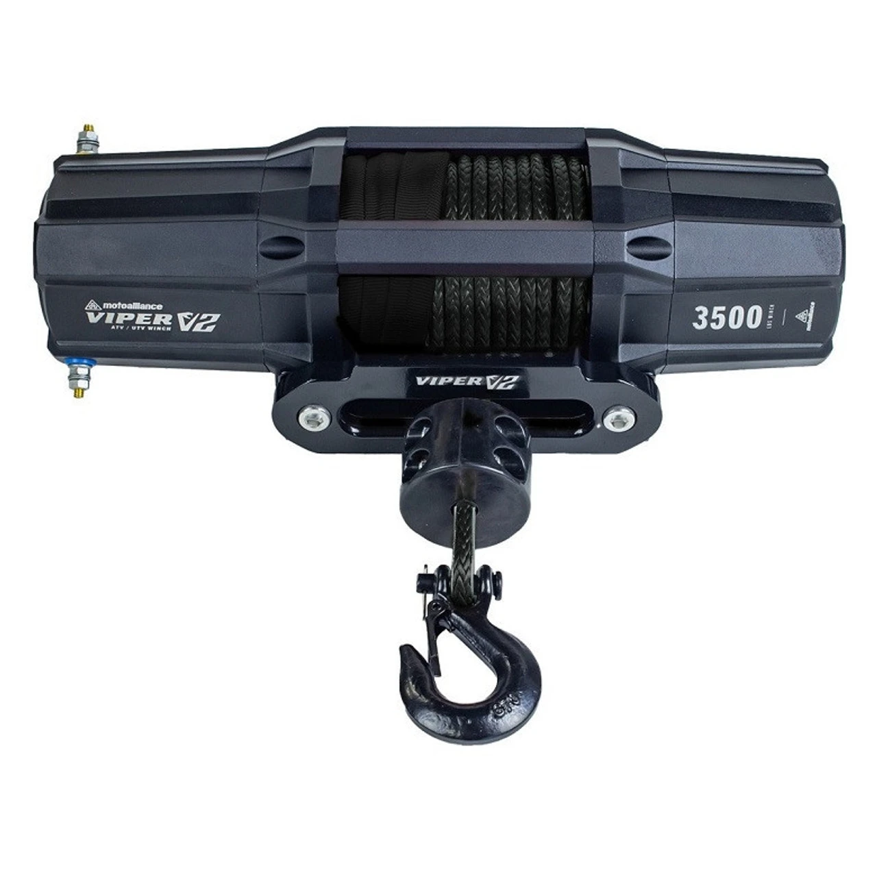 The VIPER V2 winch is the next evolution in the long-trusted VIPER line of ATV/UTV winches by MotoAlliance. Boasting a sleek design to match next-gen machines, sealed with an IP67 waterproof rating, and constructed with durable corrosion-resistant aluminum, V2 winches will handle whatever your outdoor lifestyle throws at them. Plus, every V2 comes with a wireless remote switch to make winching operations safer and more convenient. Riders who love aesthetics: the V2 has been designed to impress. Every component, from the laser-marked winch body to the blacked-out stainless-steel hook to the stealth wiring, falls in line with the elevated design standard of VIPER Winches of 2022. In addition, all V2s are hand-wound with your color choice of USA-made AmSteel-Blue synthetic rope. The VIPER V2 is a great choice for discerning riders who love to push their machines to the limits.