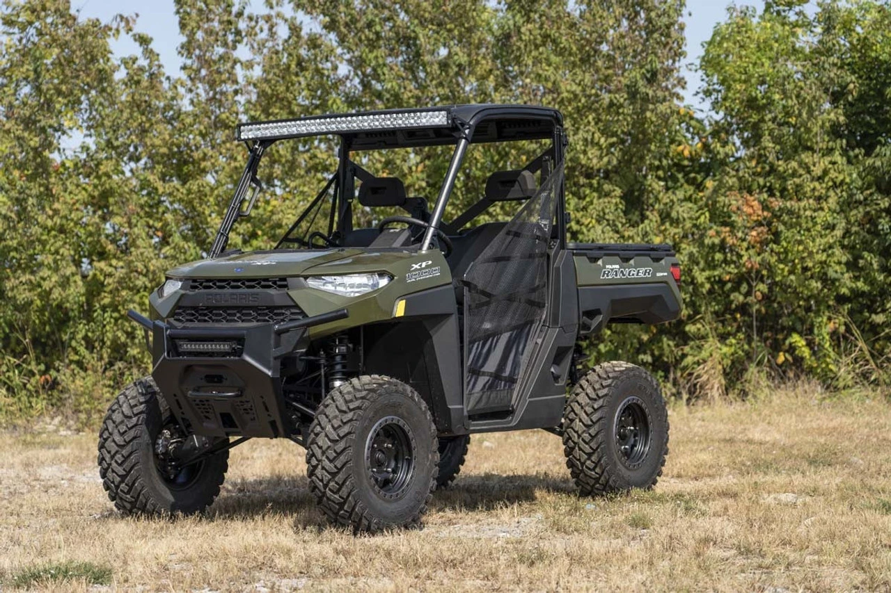 You don’t have to rely exclusively on your skid plates if you’re consistently getting high-centered on irregular terrain. Nor do you have to invest in expensive portal lifts or long-distance travel setups to position your rig higher off the ground. With this 3” Polaris Ranger lift kit by Rough Country, you can increase the height of your UTV, make space to run larger tires, and give your rig a meaner and more aggressive look — all without having to pay an arm and a leg. While other bracket lifts for the Polaris Ranger significantly alter the vehicle’s geometry, the Rough Country lift kit uses aluminum strut spacers, front and rear lifting brackets, and elongated sway links and bracket spacer sleeves to keep the angle of the suspension components, a-arms, and axles bounded within a reasonable limit. Because of this, your machine’s differentials won’t be constantly slipping out, and the CV joints, axles, and shocks won’t experience any additional stress forces. Get the ride height you desire and install a Rough Country lift kit on your Polaris Ranger ASAP!