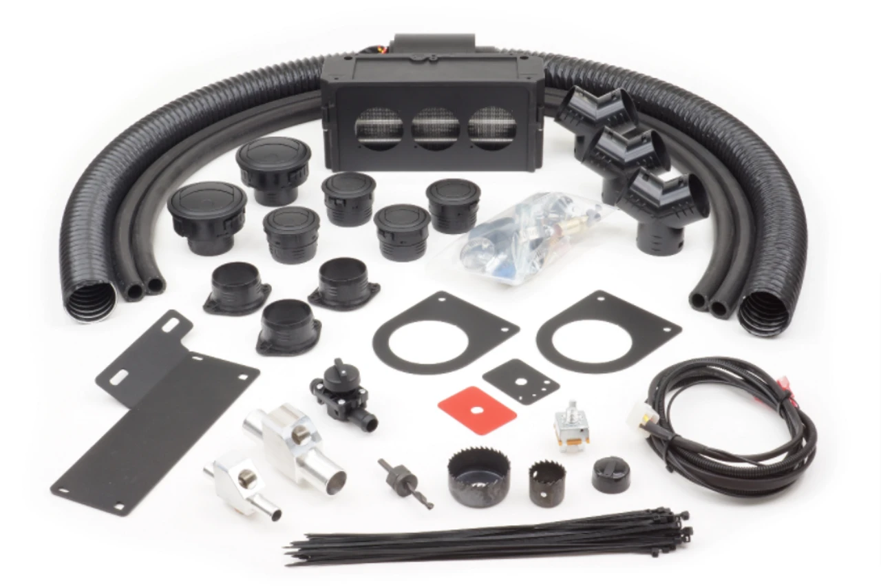 Use your cooling system to heat your cab! From the original designer of the Firestorm UTV Cab Heaters comes our new and improved Ice Crusher Compact UTV Heaters. This Ice Crusher Under Dash Compact Heater kit has two 360 adjustable front louvers to direct the heat where you need it. The heater features a three-speed fan and temperature adjustment is located right on the 14,600 BTU* heater unit. The heater mounts under the center of the dash which leaves plenty of room for your feet. Kits are supplied with our custom CNC made alloy Y connectors which connect directly to the engine’s cooling system. Comes with templates, mounting brackets, hoses, custom CNC made Y fittings, built-in shut off valve, clamps, hardware, wiring, hole saw, instructions, and more.